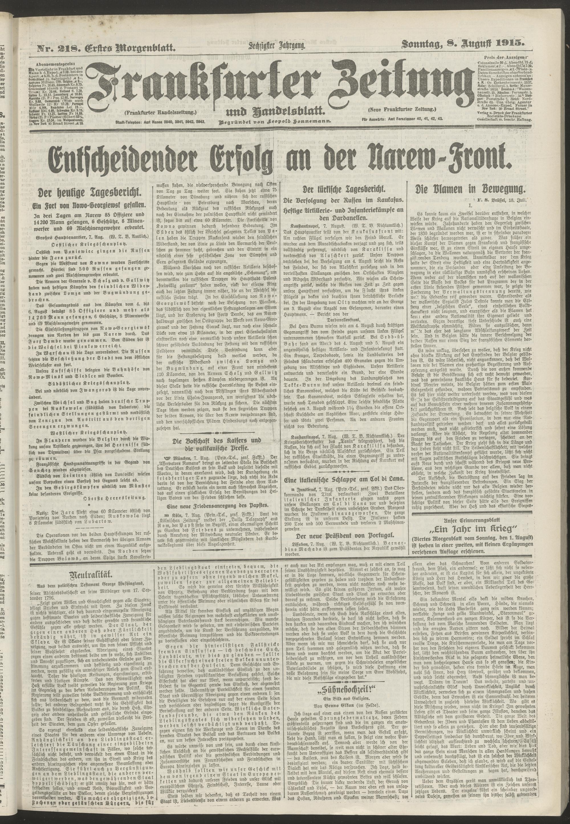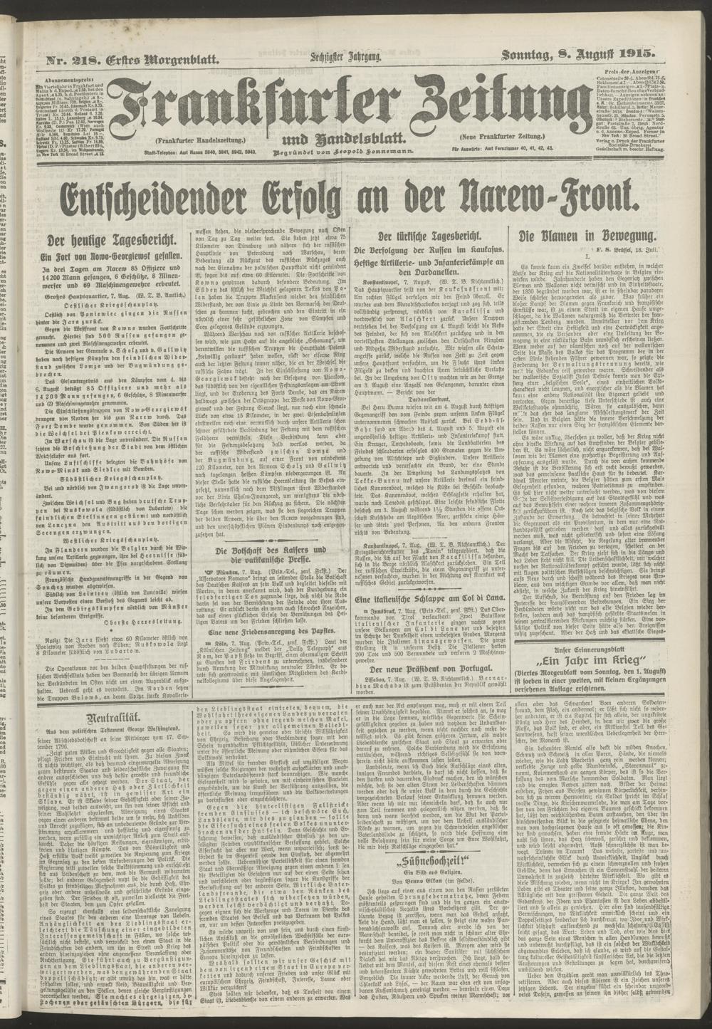 08.08.1915 = Nr. 218. Erstes Morgenblatt