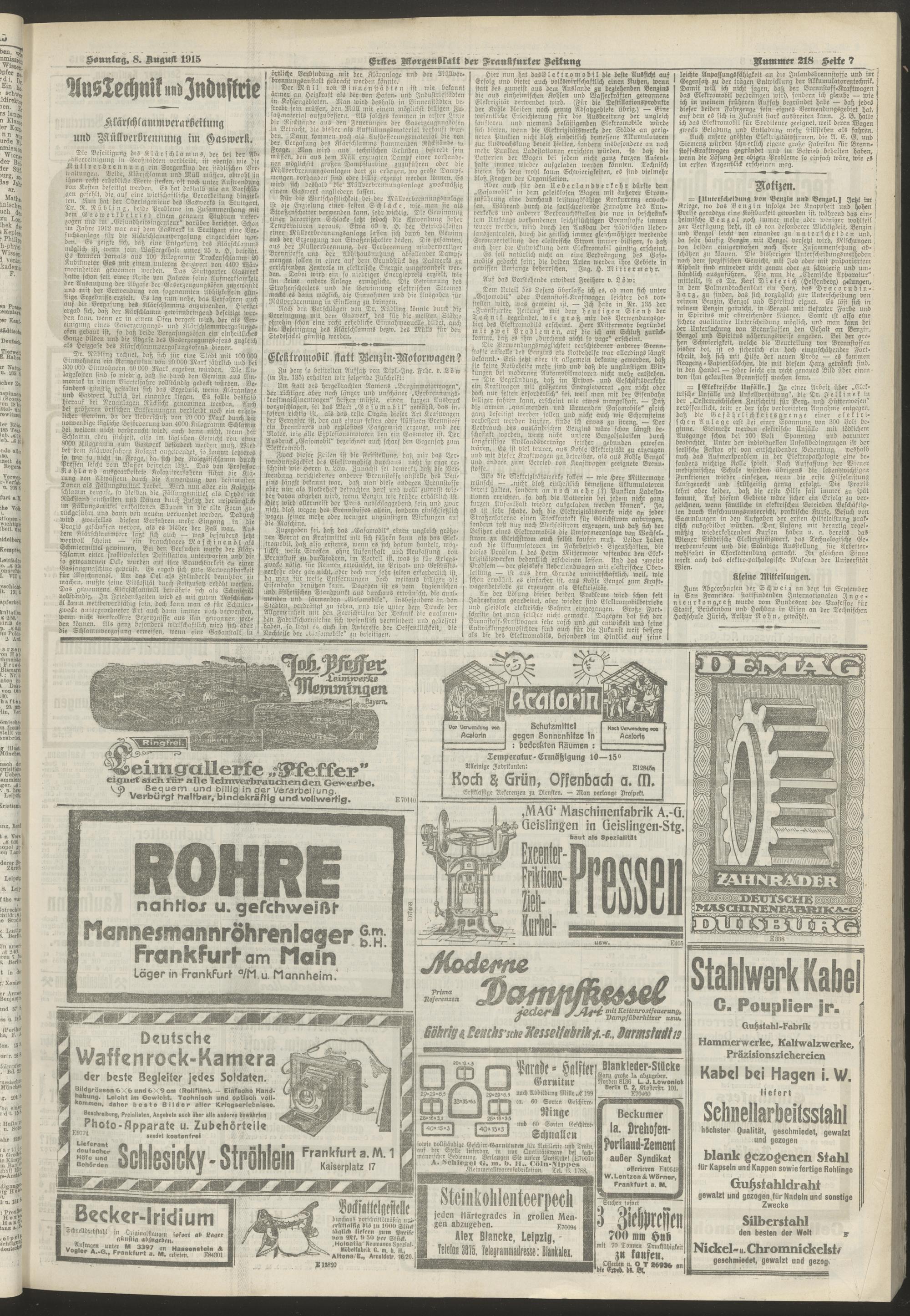 08.08.1915 = Nr. 218. Erstes Morgenblatt