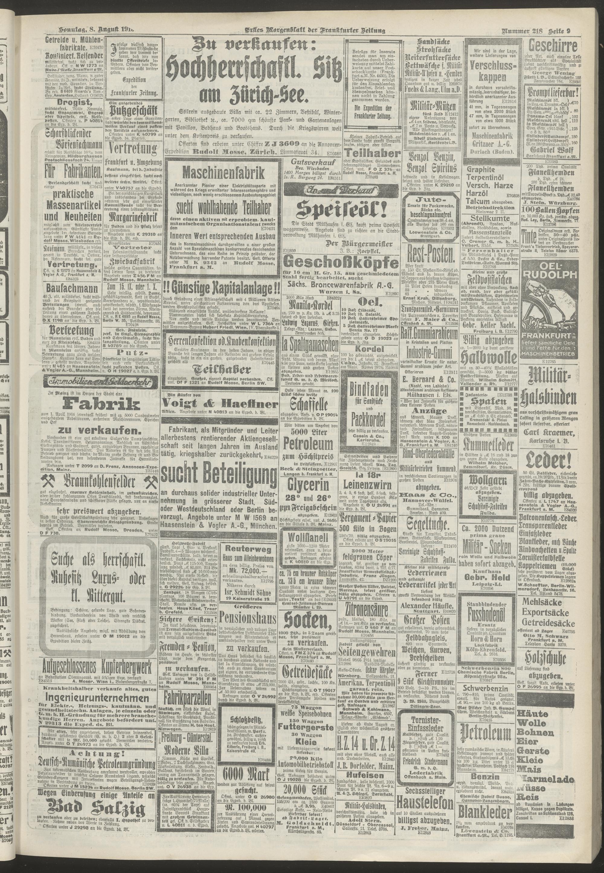 08.08.1915 = Nr. 218. Erstes Morgenblatt
