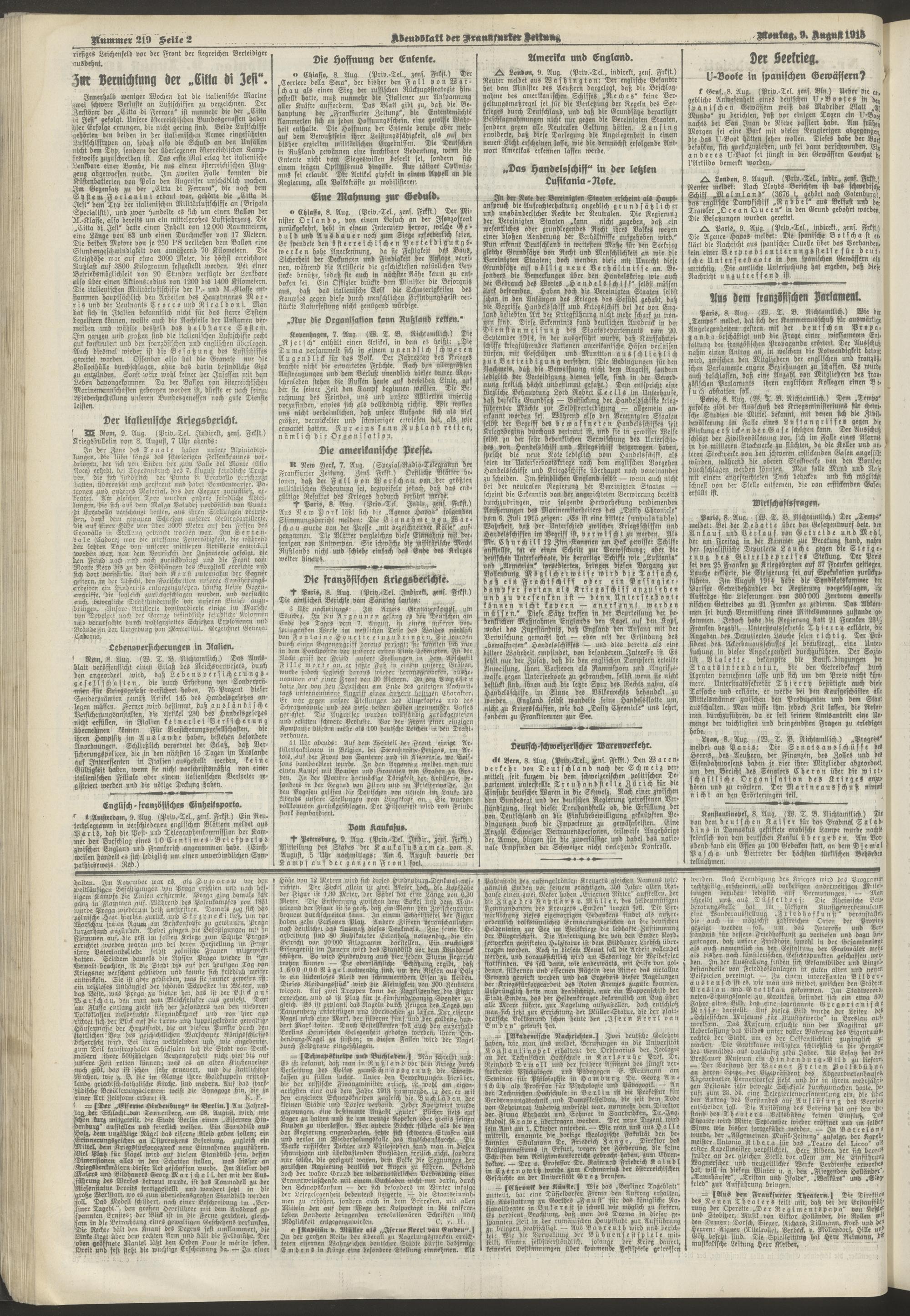 09.08.1915 = Nr. 219. Abendblatt