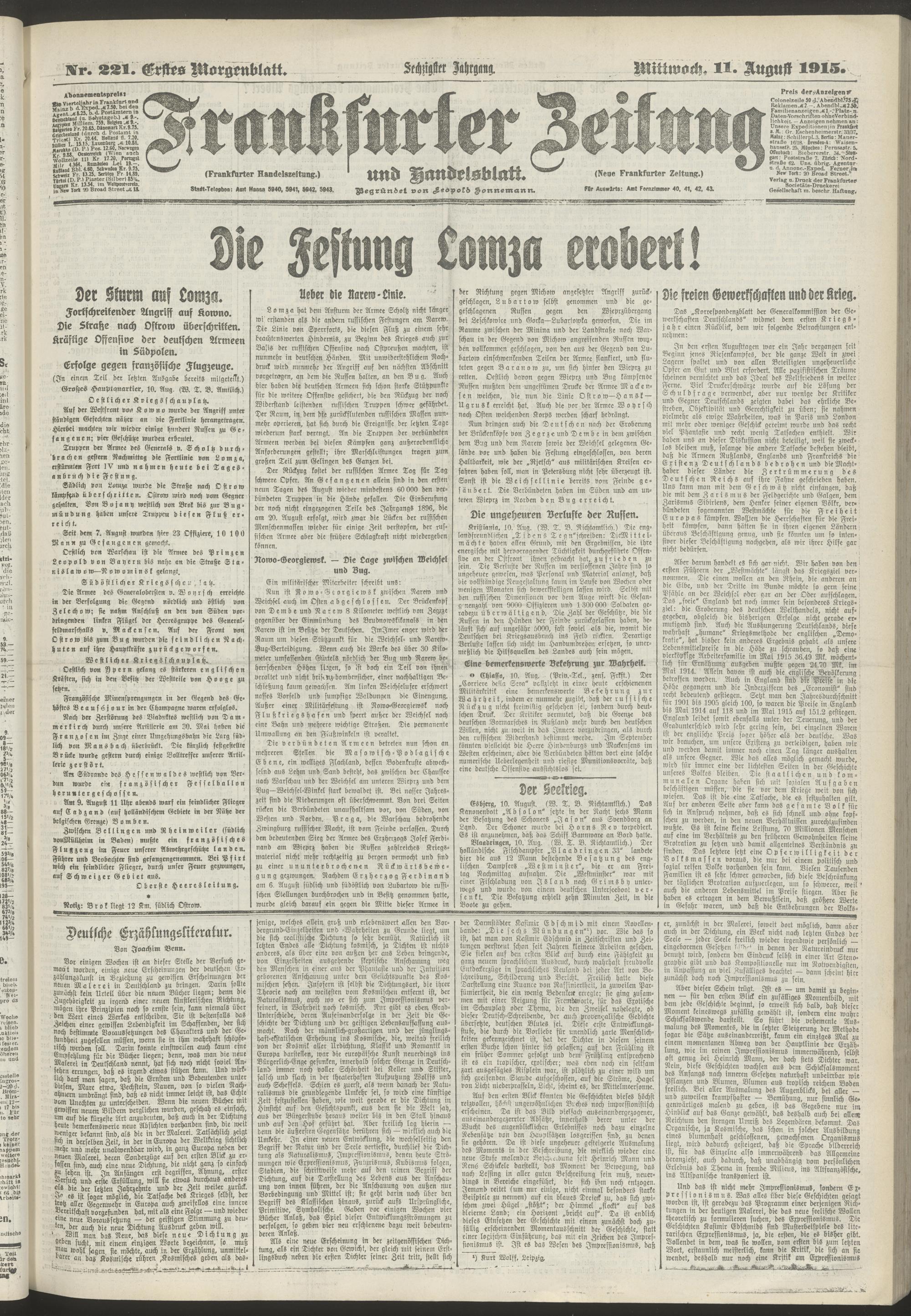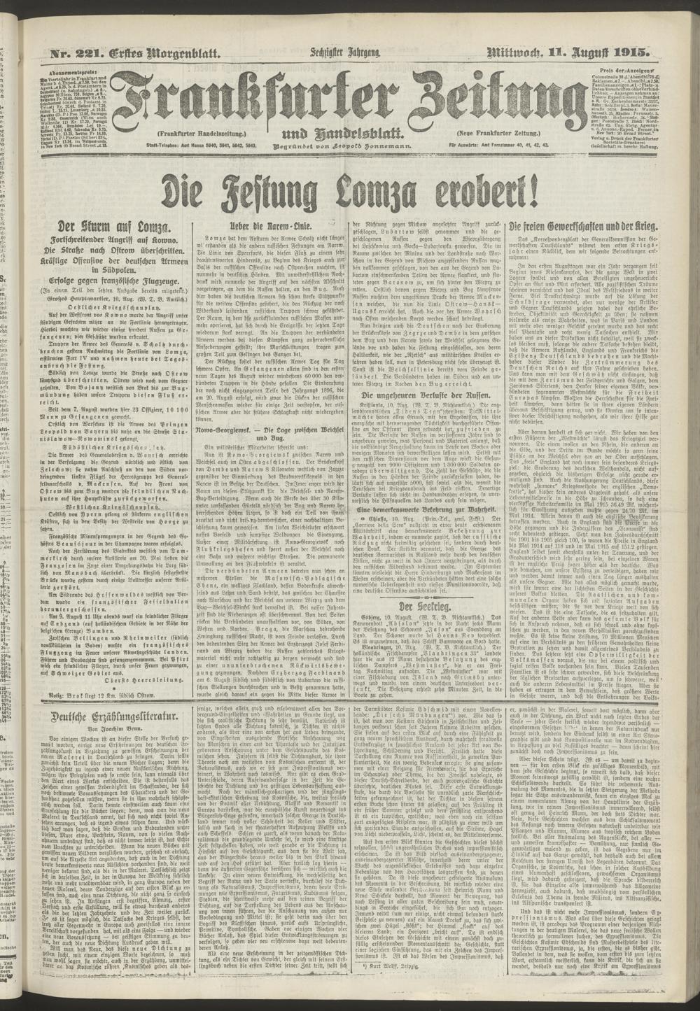 11.08.1915 = Nr. 221. Erstes Morgenblatt