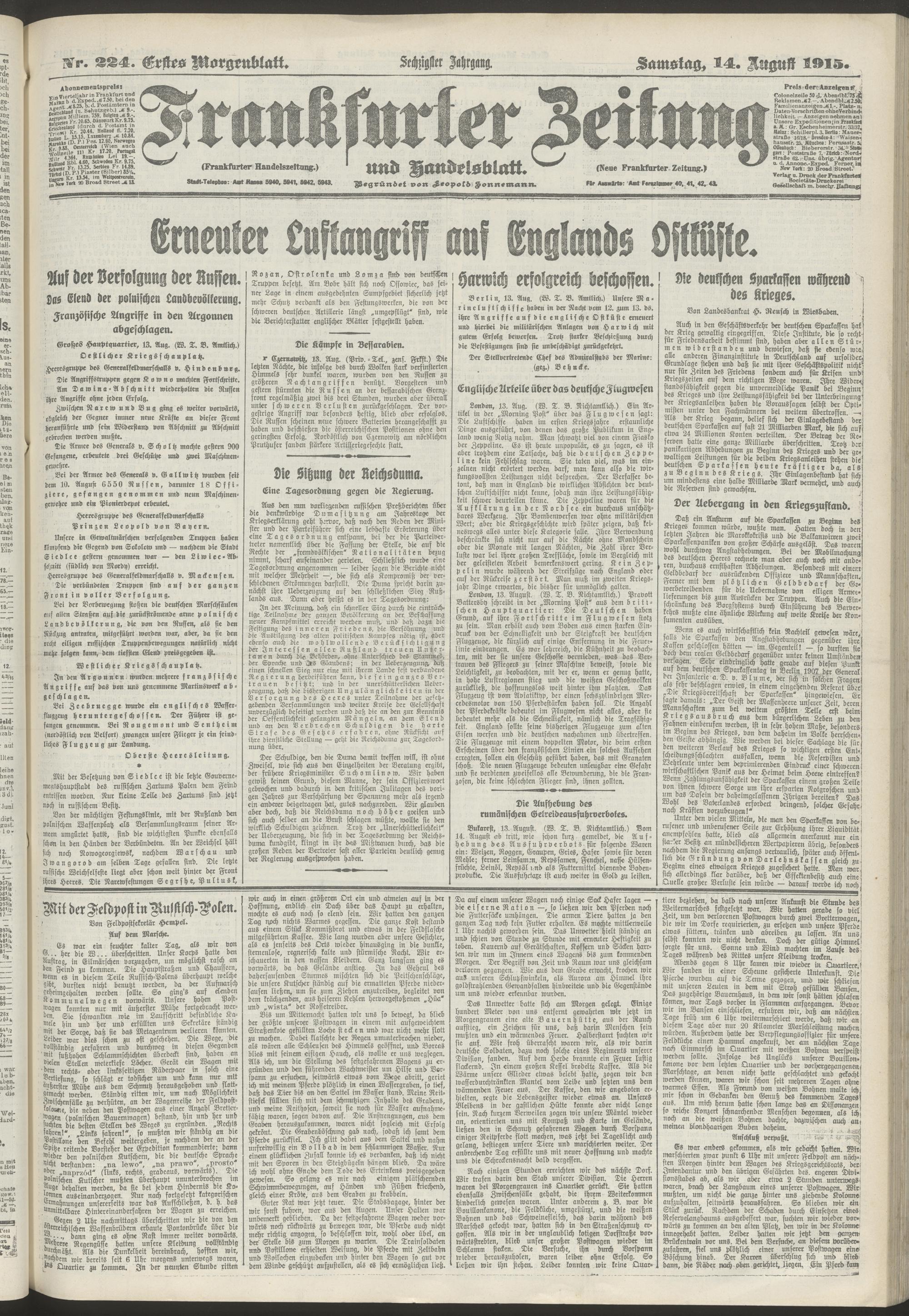 14.08.1915 = Nr. 224. Erstes Morgenblatt