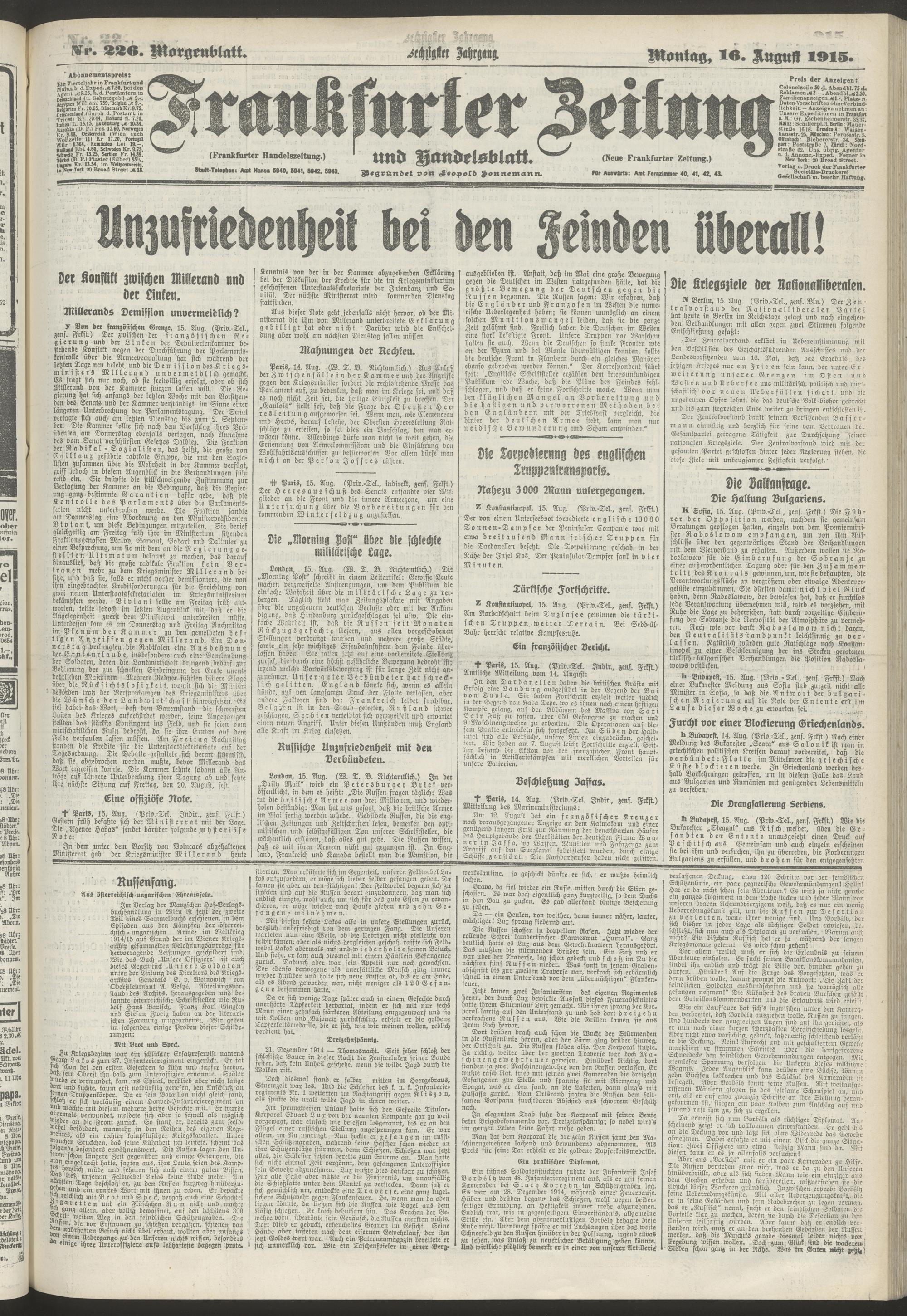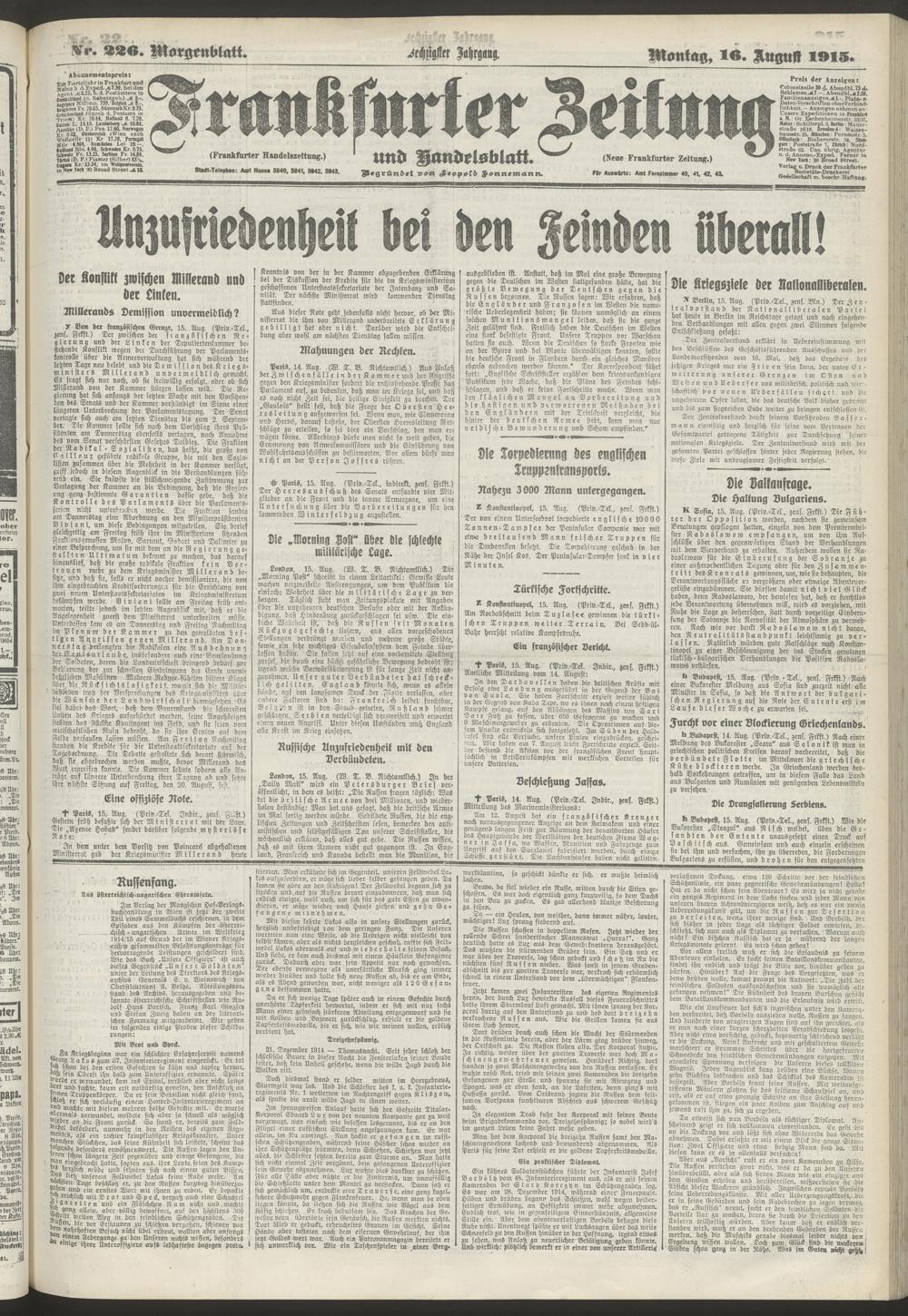 16.08.1915 = Nr. 226. Morgenblatt