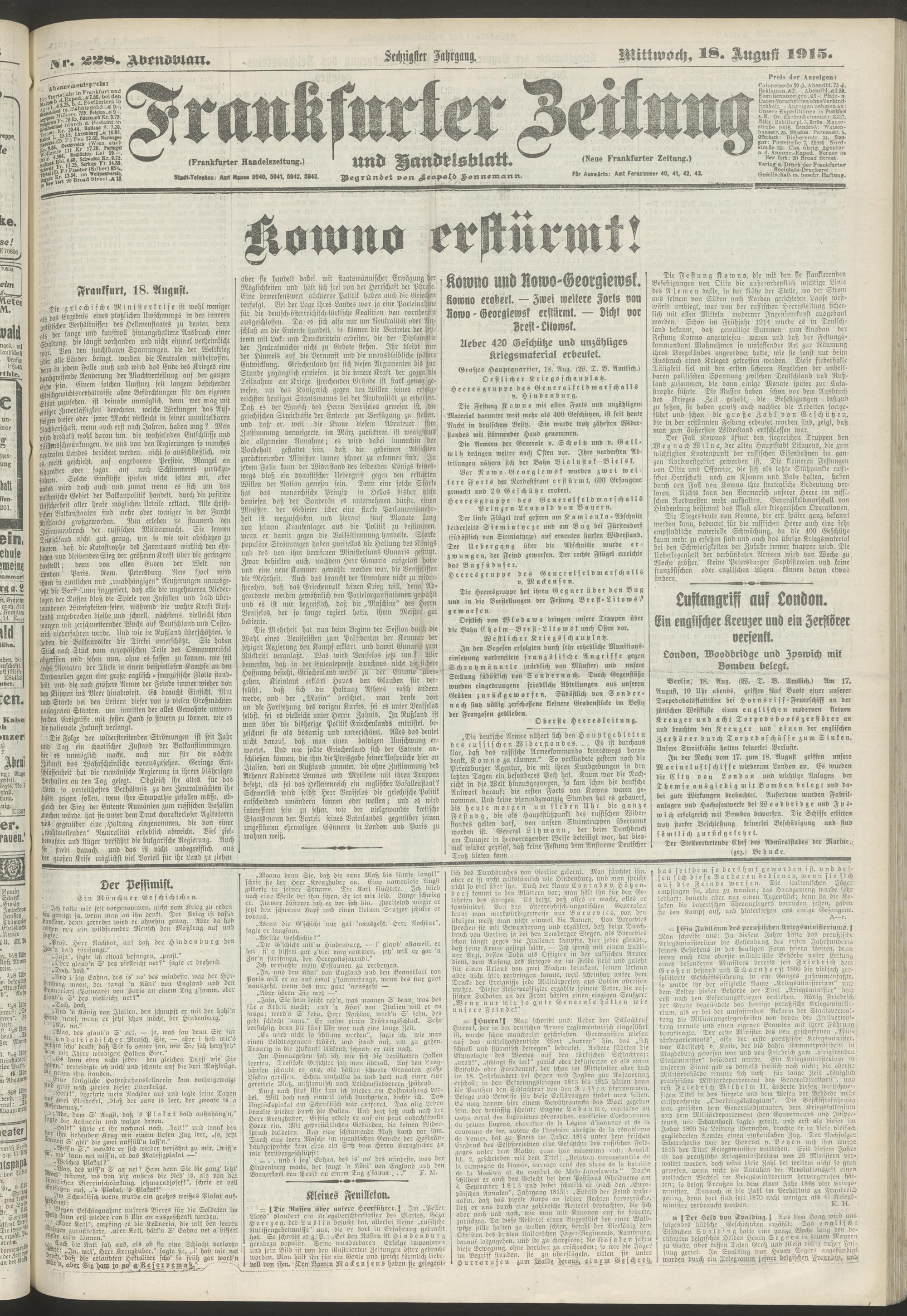 18.08.1915 = Nr. 228. Abendblatt