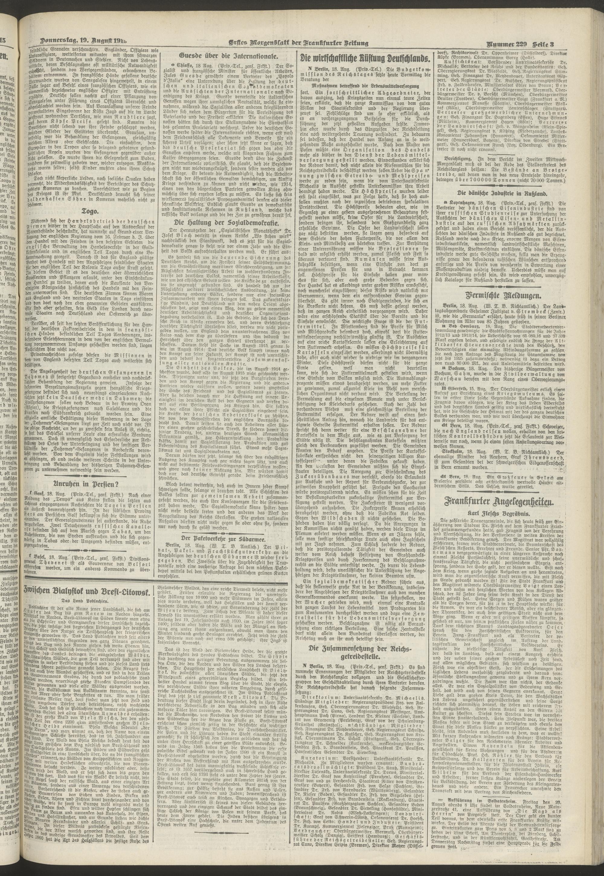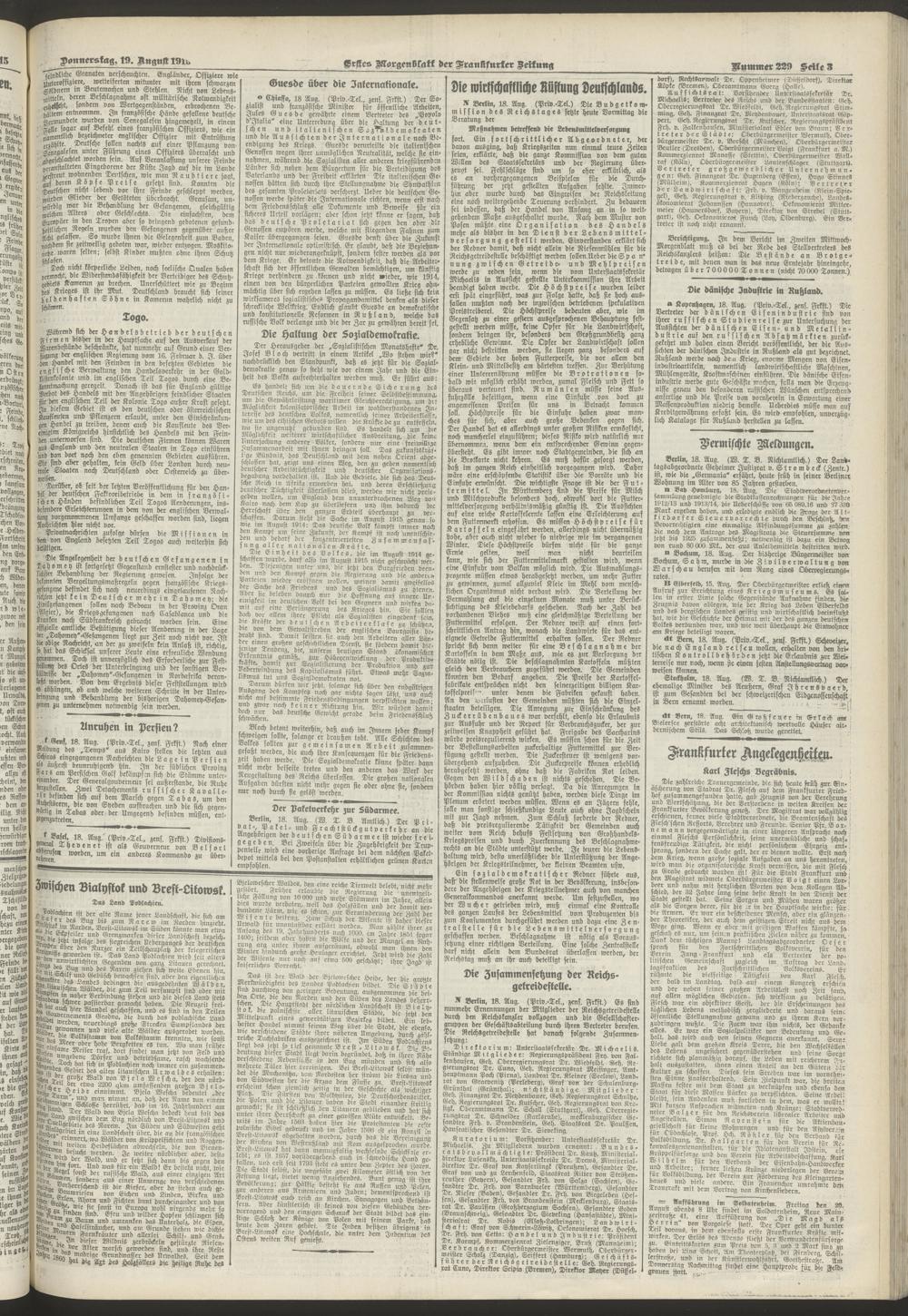 19.08.1915 = Nr. 229. Erstes Morgenblatt