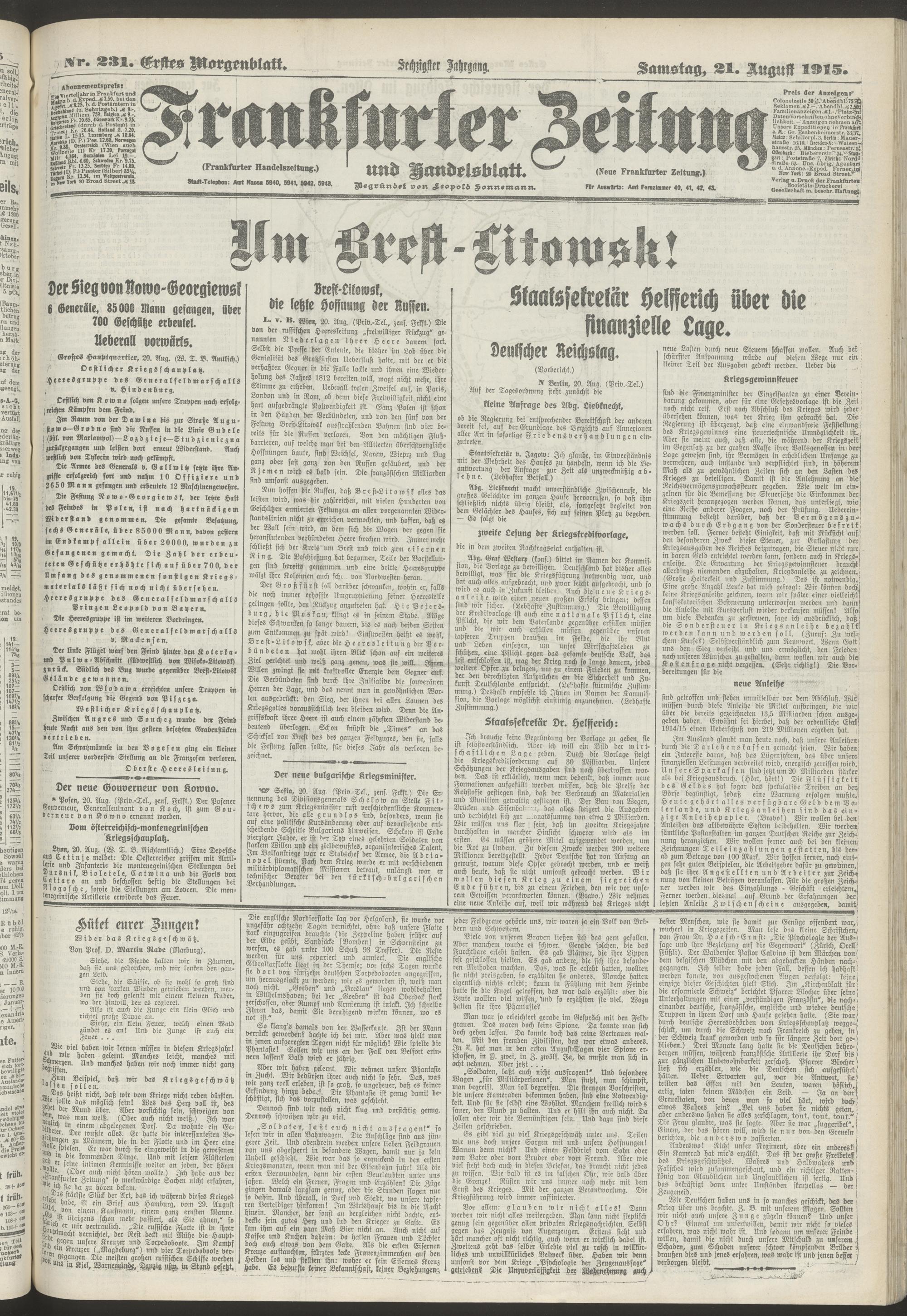 21.08.1915 = Nr. 231. Erstes Morgenblatt