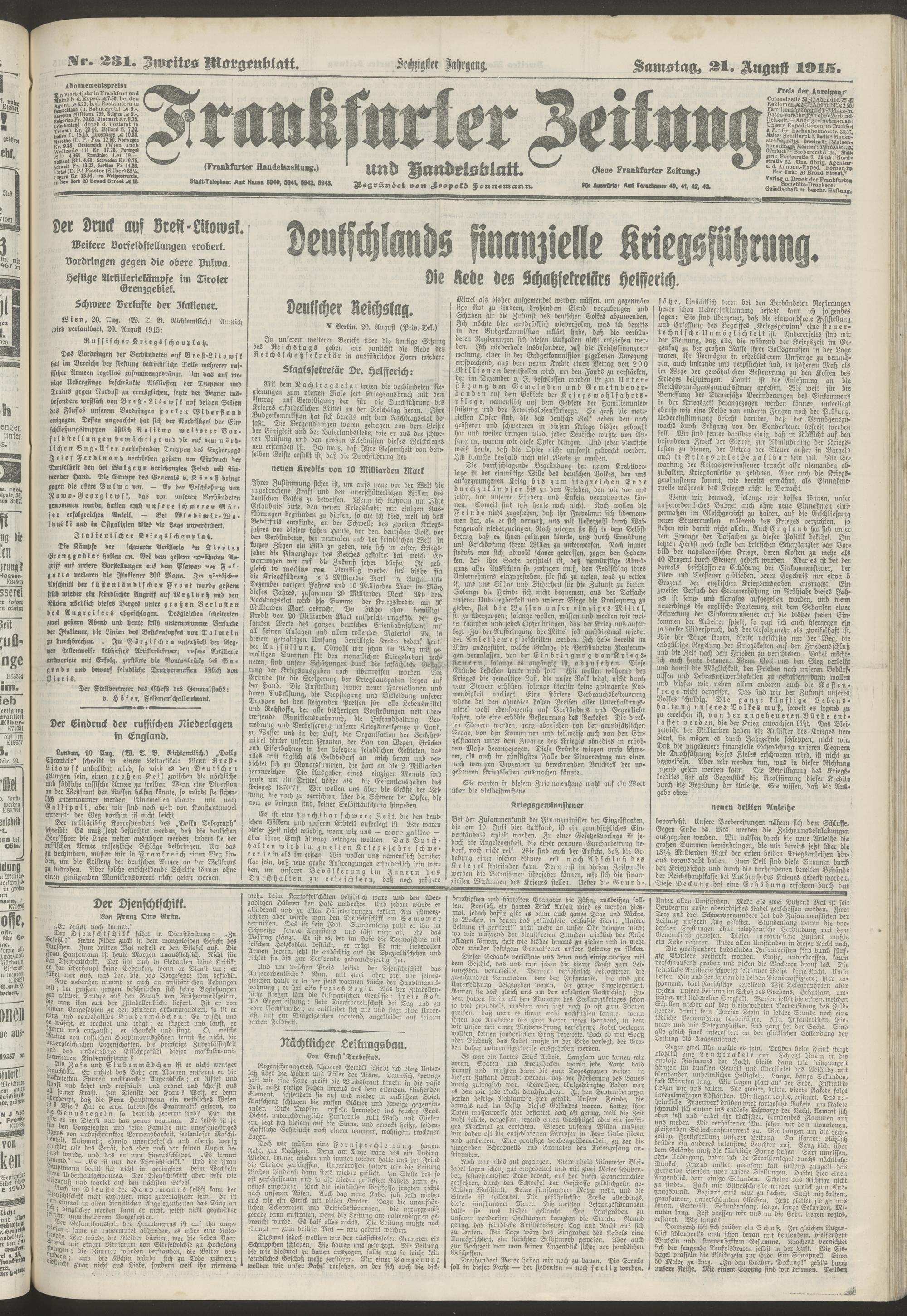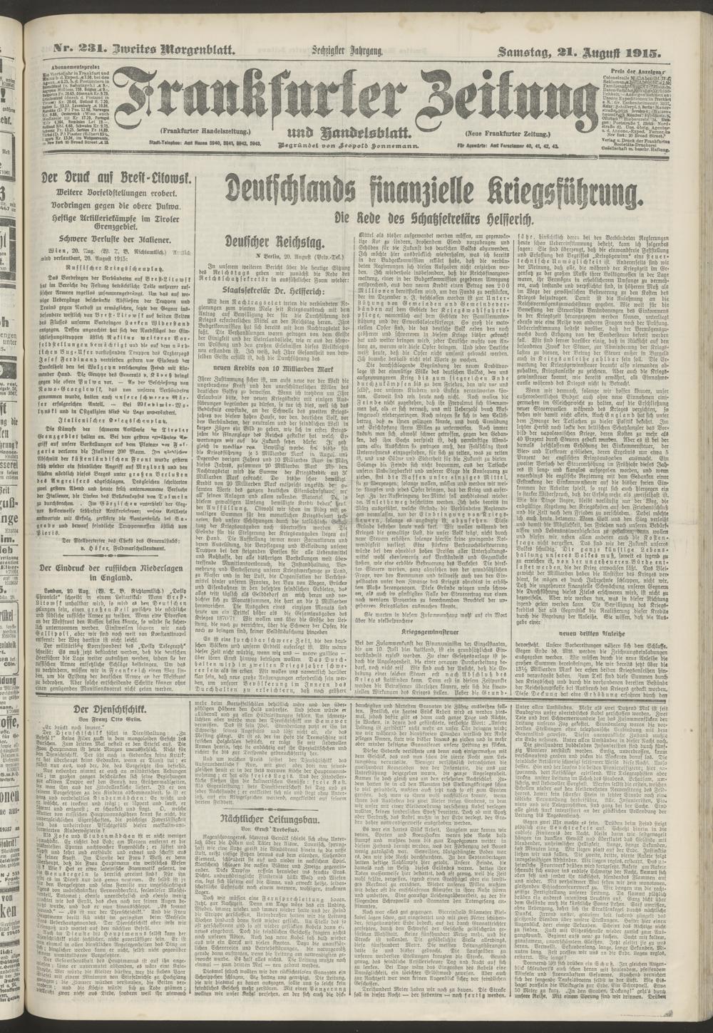 21.08.1915 = Nr. 231. Zweites Morgenblatt