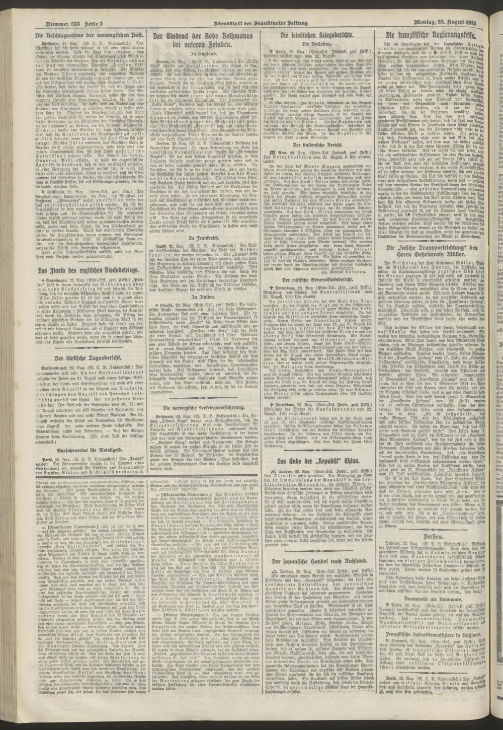 23.08.1915 = Nr. 233. Abendblatt