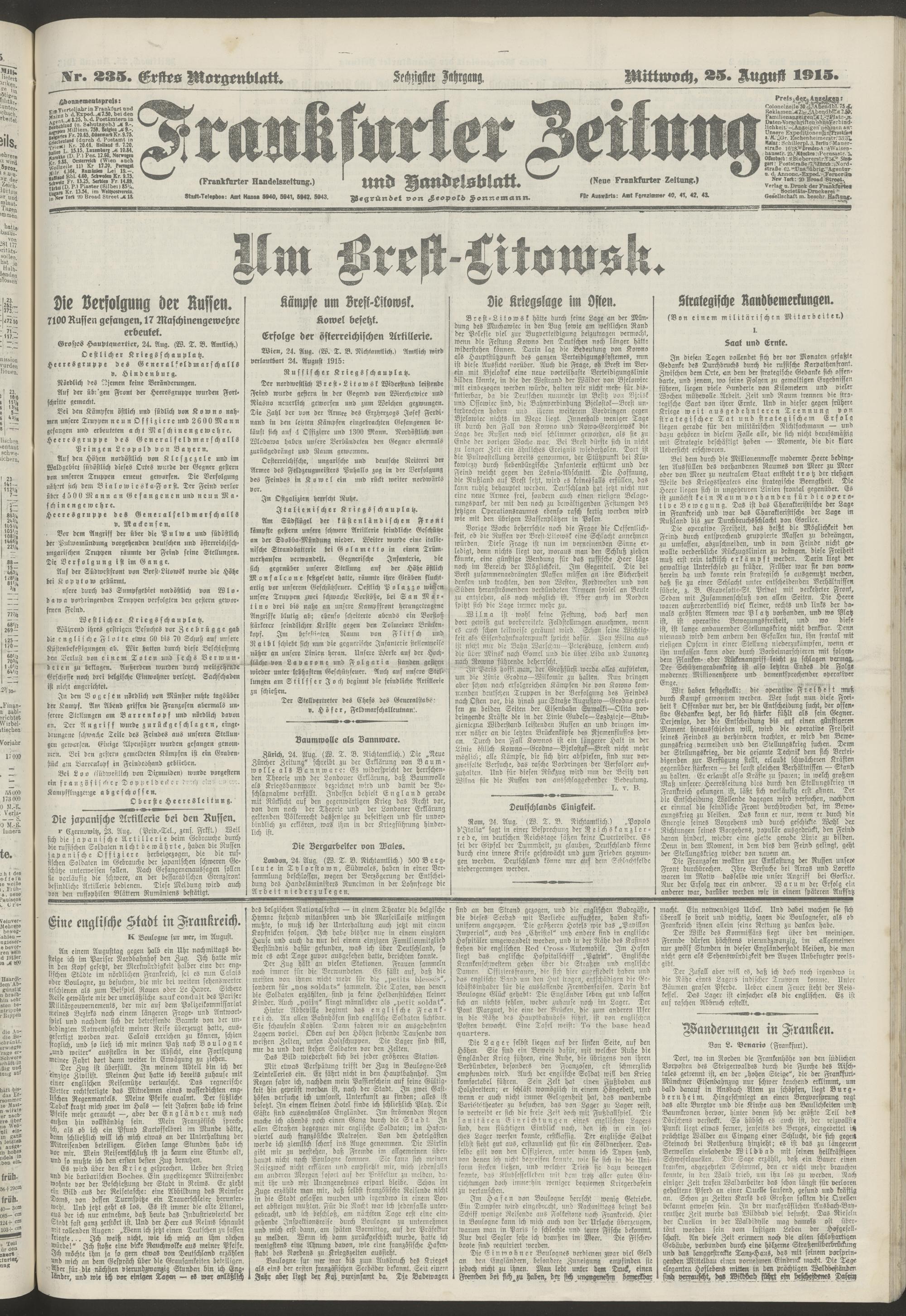 25.08.1915 = Nr. 235. Erstes Morgenblatt