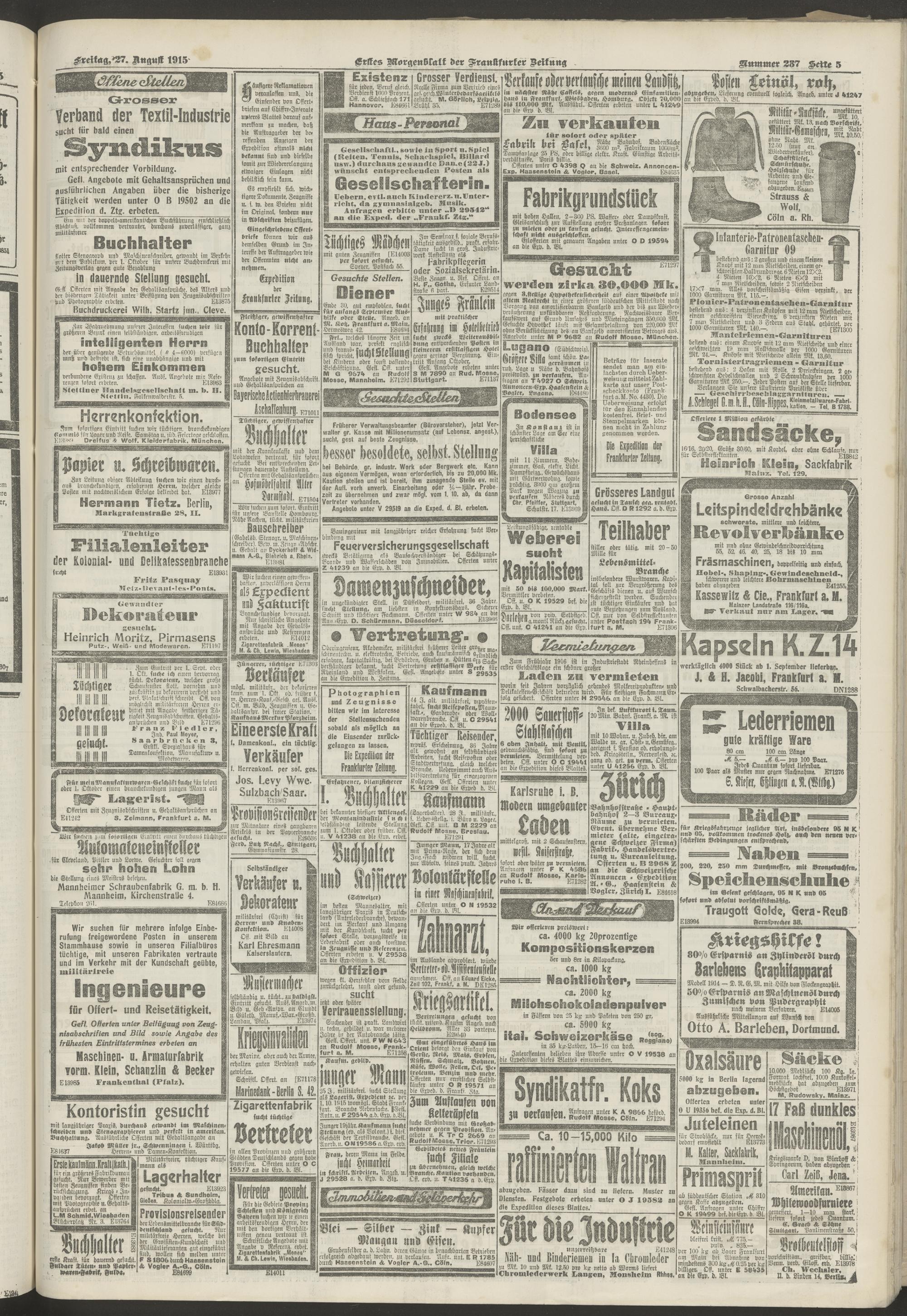 27.08.1915 = Nr. 237. Erstes Morgenblatt