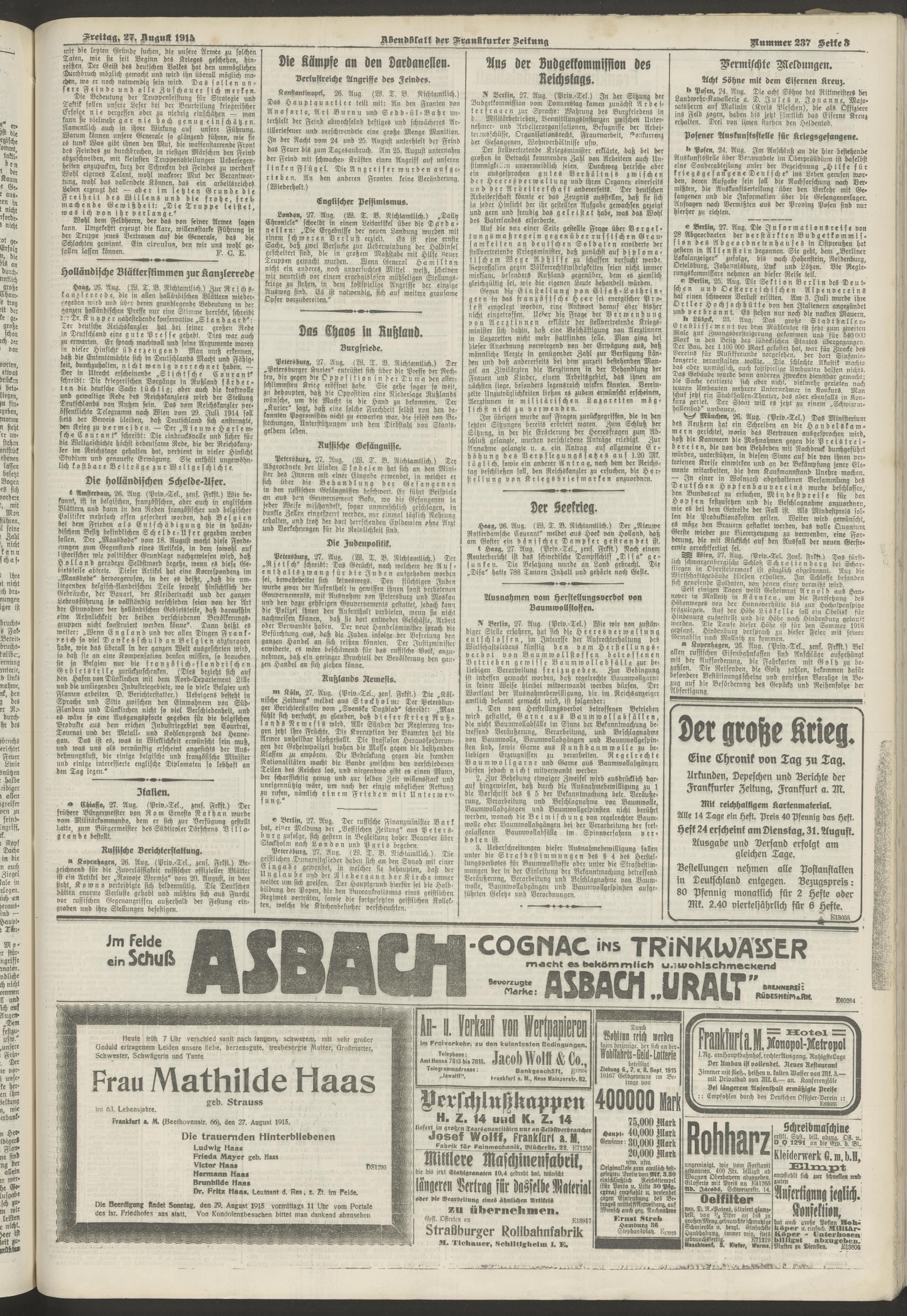 27.08.1915 = Nr. 237. Abendblatt