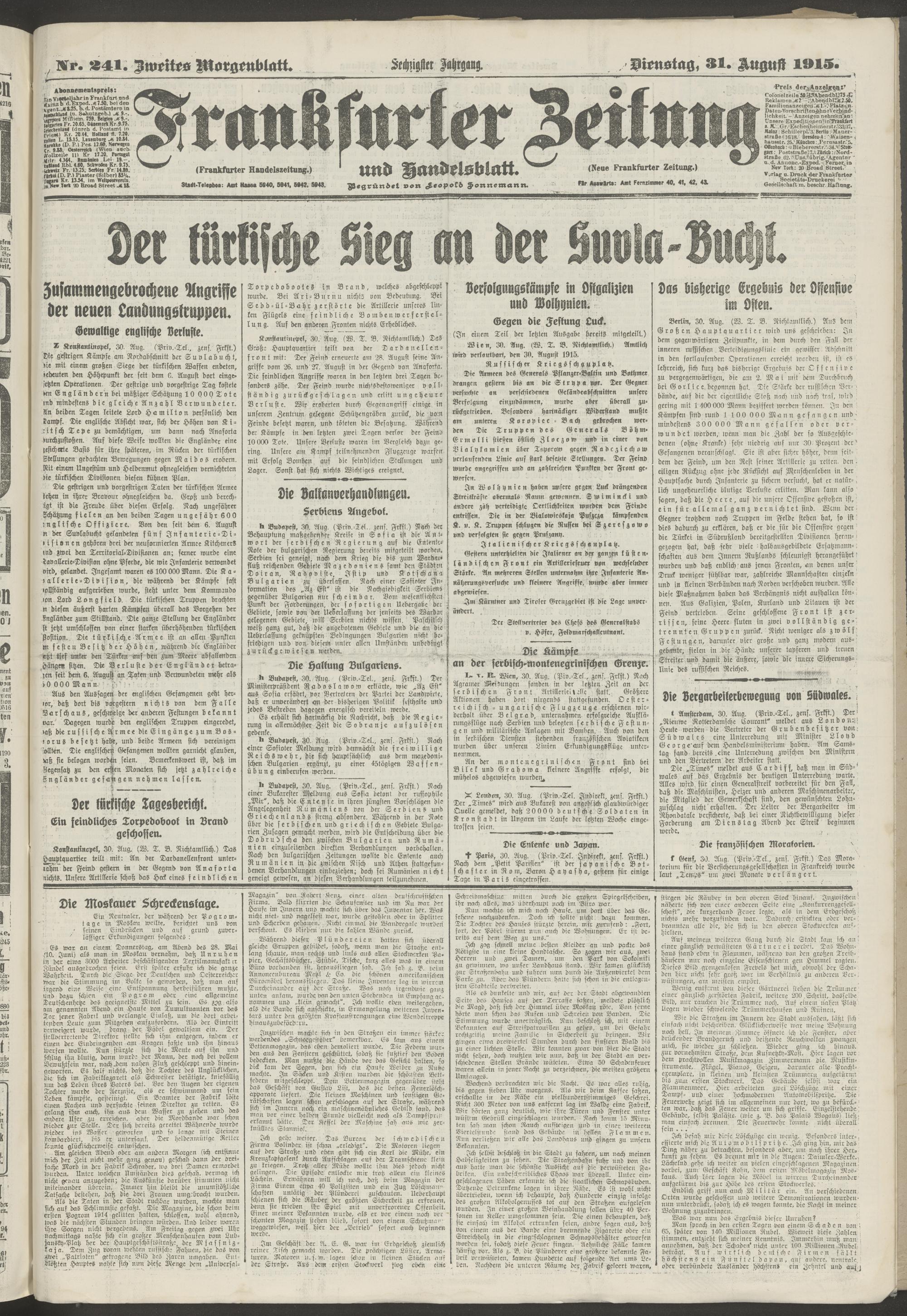 31.08.1915 = Nr. 241. Zweites Morgenblatt