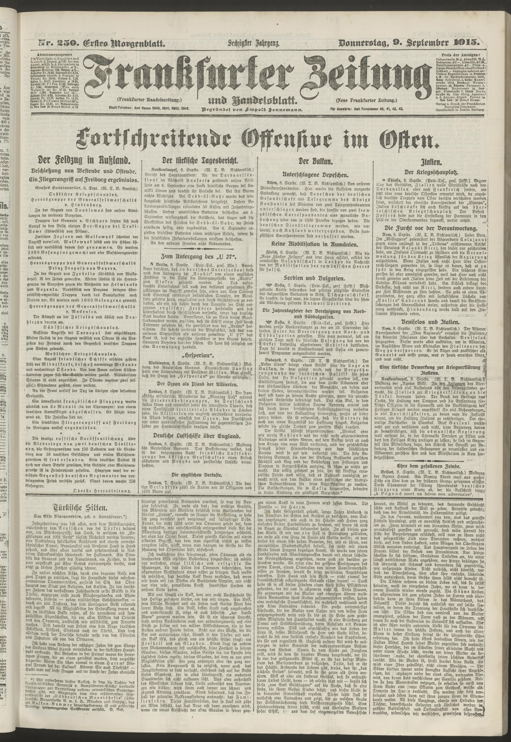 09.09.1915 = Nr. 250. Erstes Morgenblatt