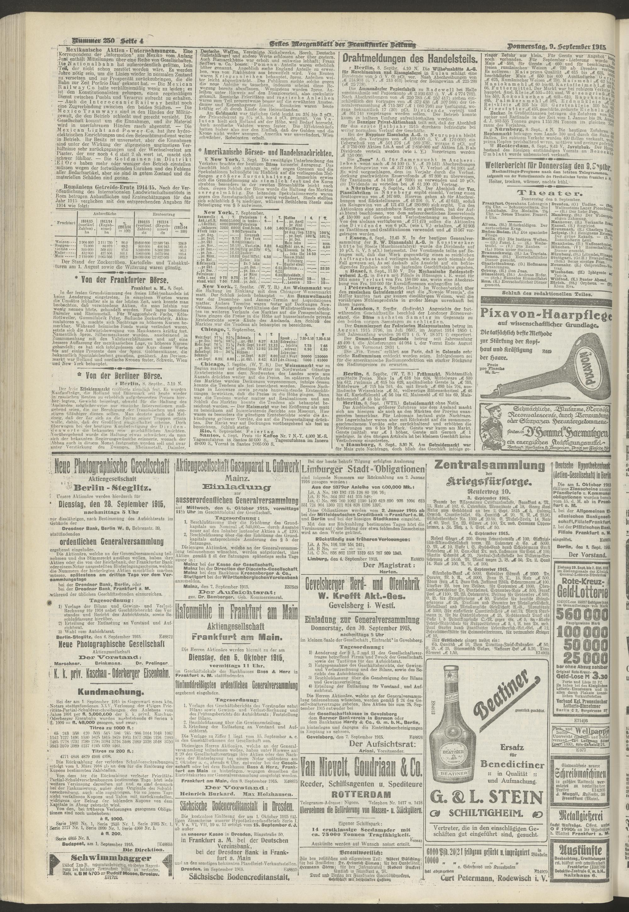 09.09.1915 = Nr. 250. Erstes Morgenblatt