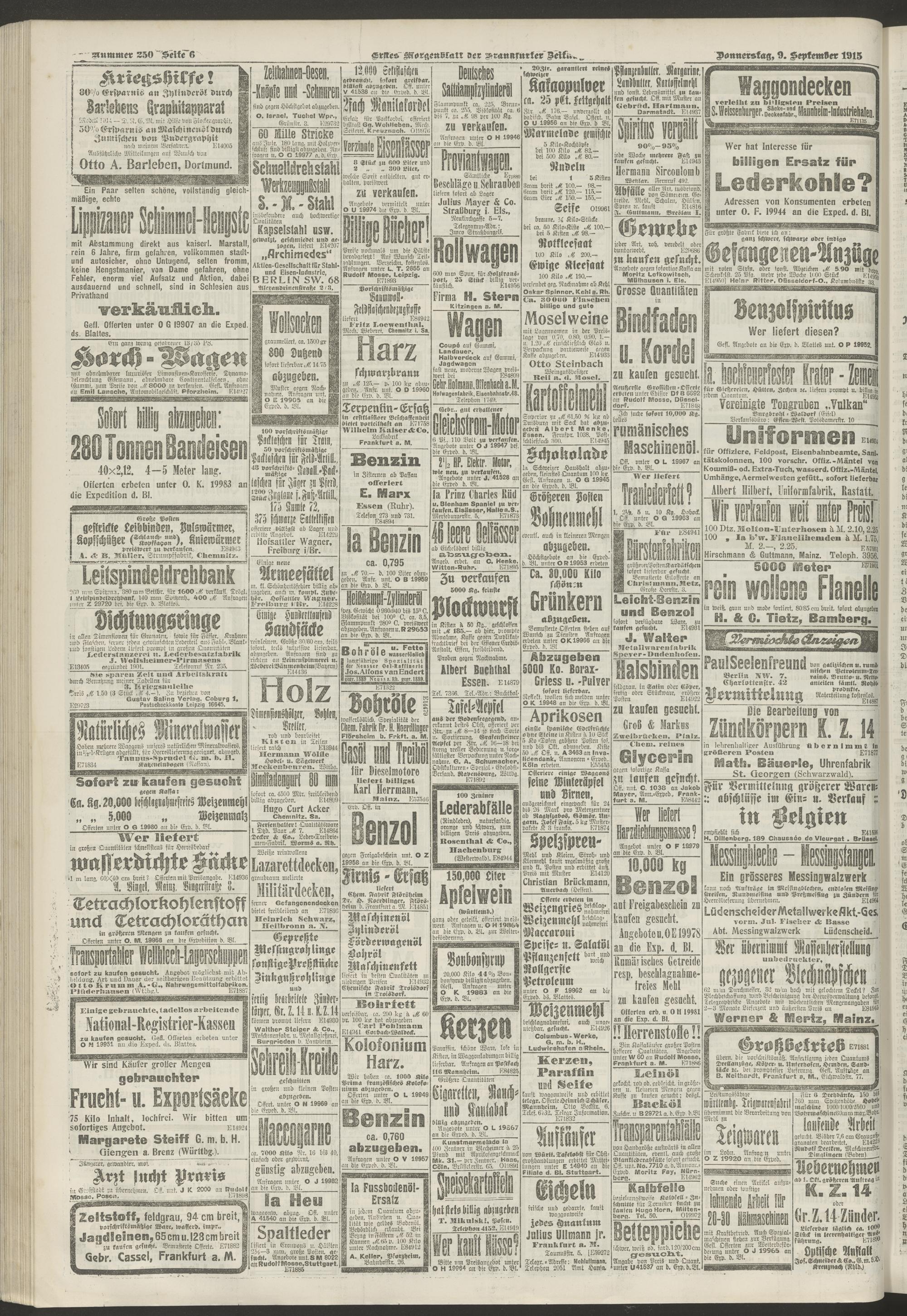 09.09.1915 = Nr. 250. Erstes Morgenblatt