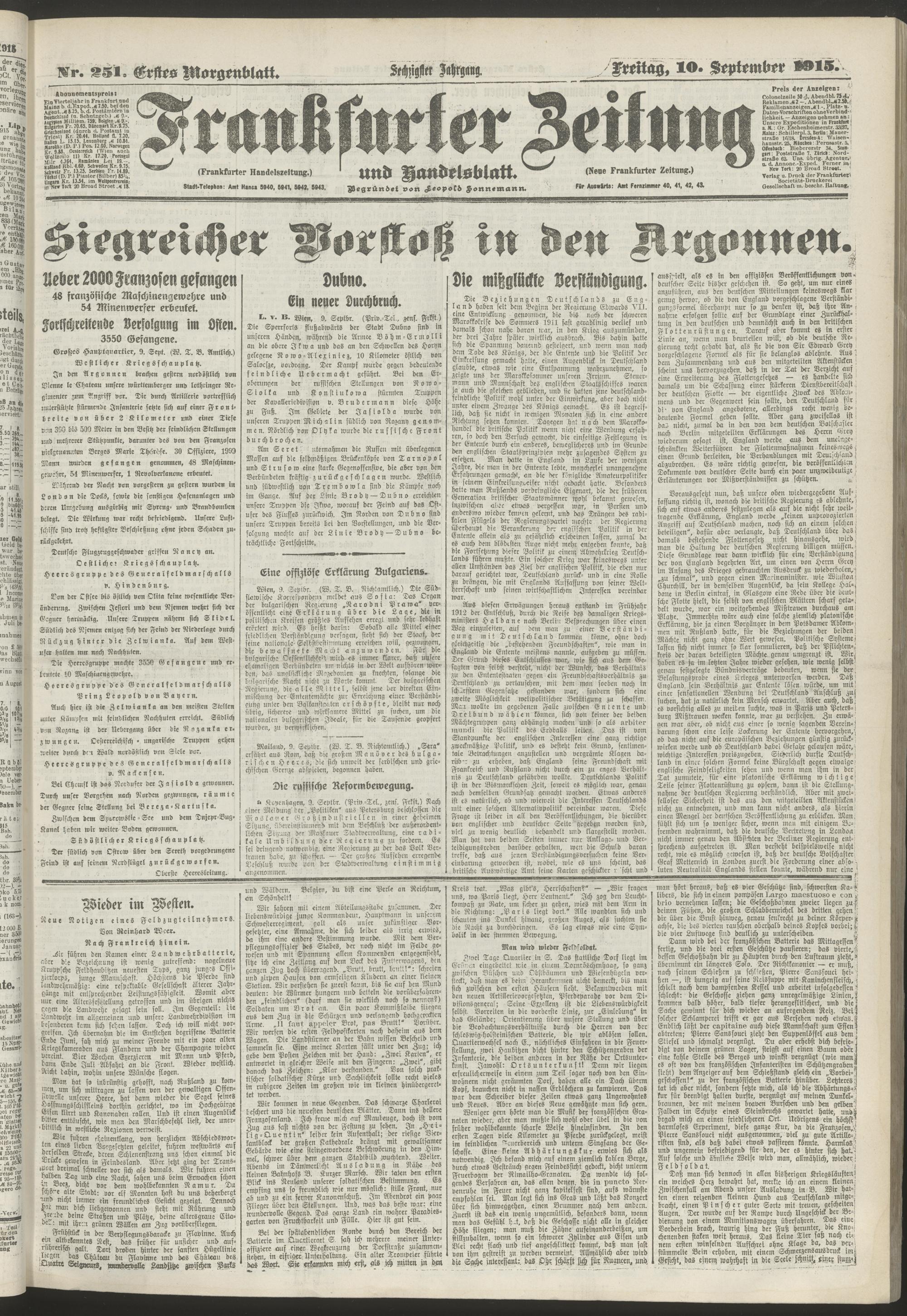 10.09.1915 = Nr. 251. Erstes Morgenblatt