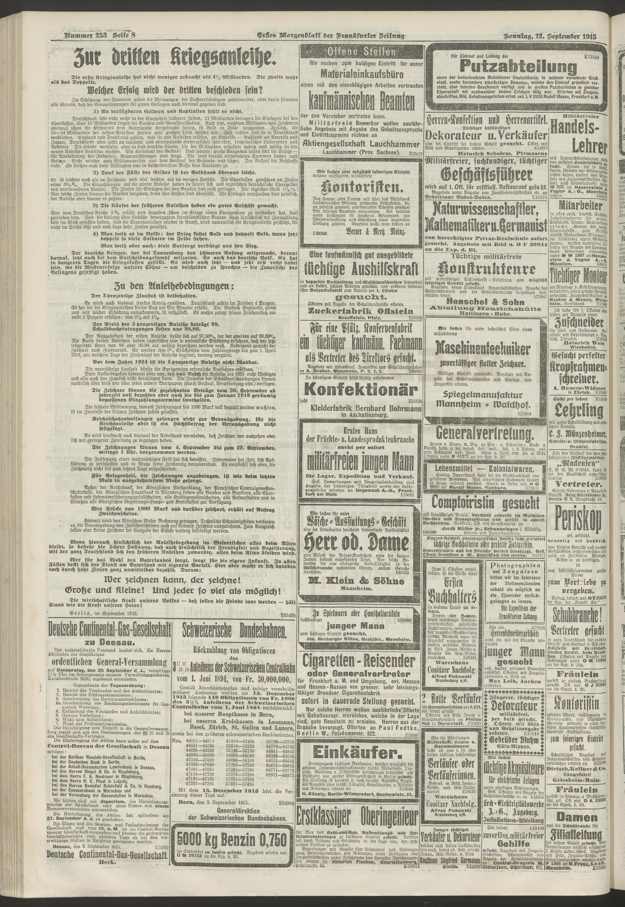 12.09.1915 = Nr. 253. Erstes Morgenblatt