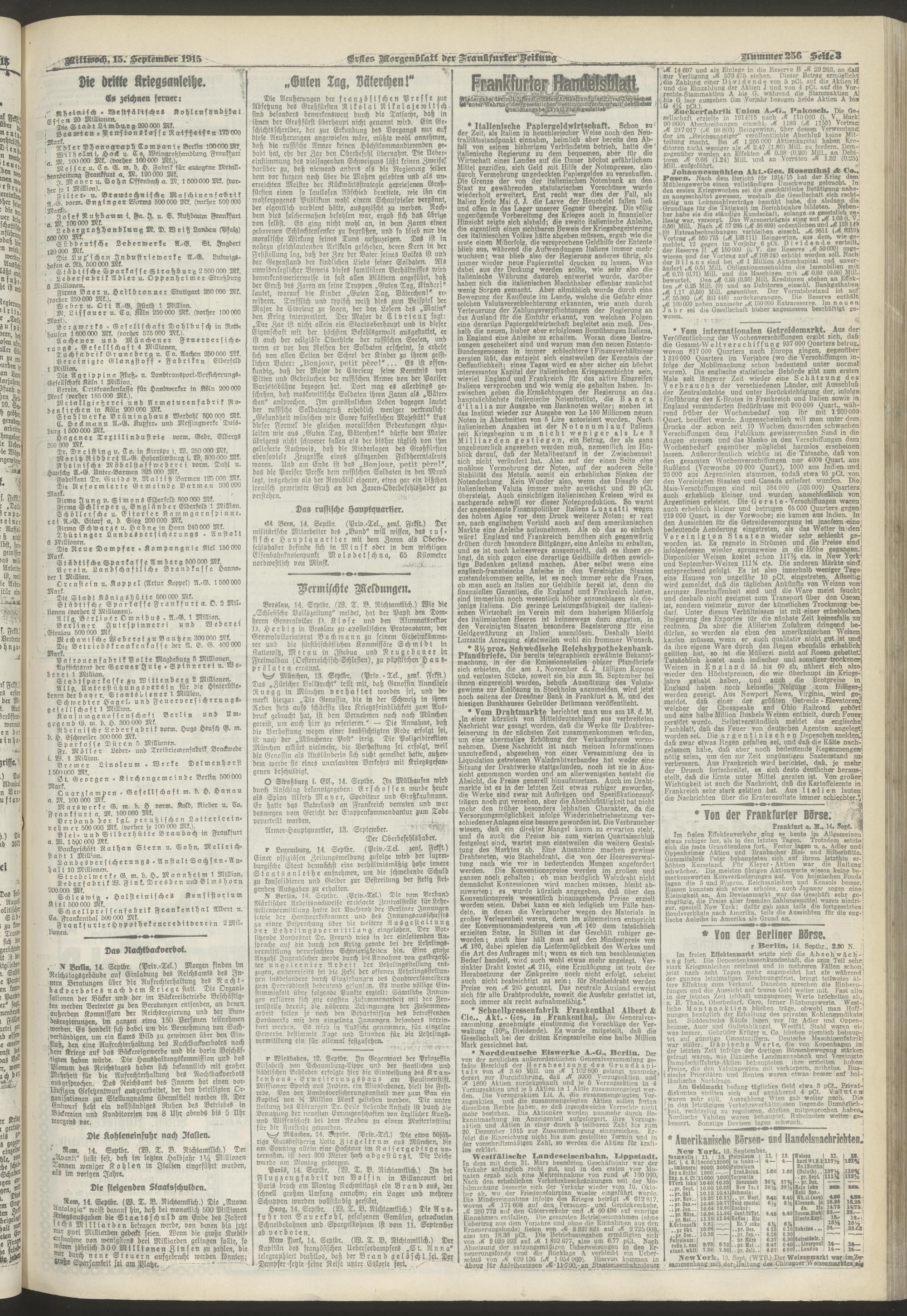 15.09.1915 = Nr. 256. Erstes Morgenblatt