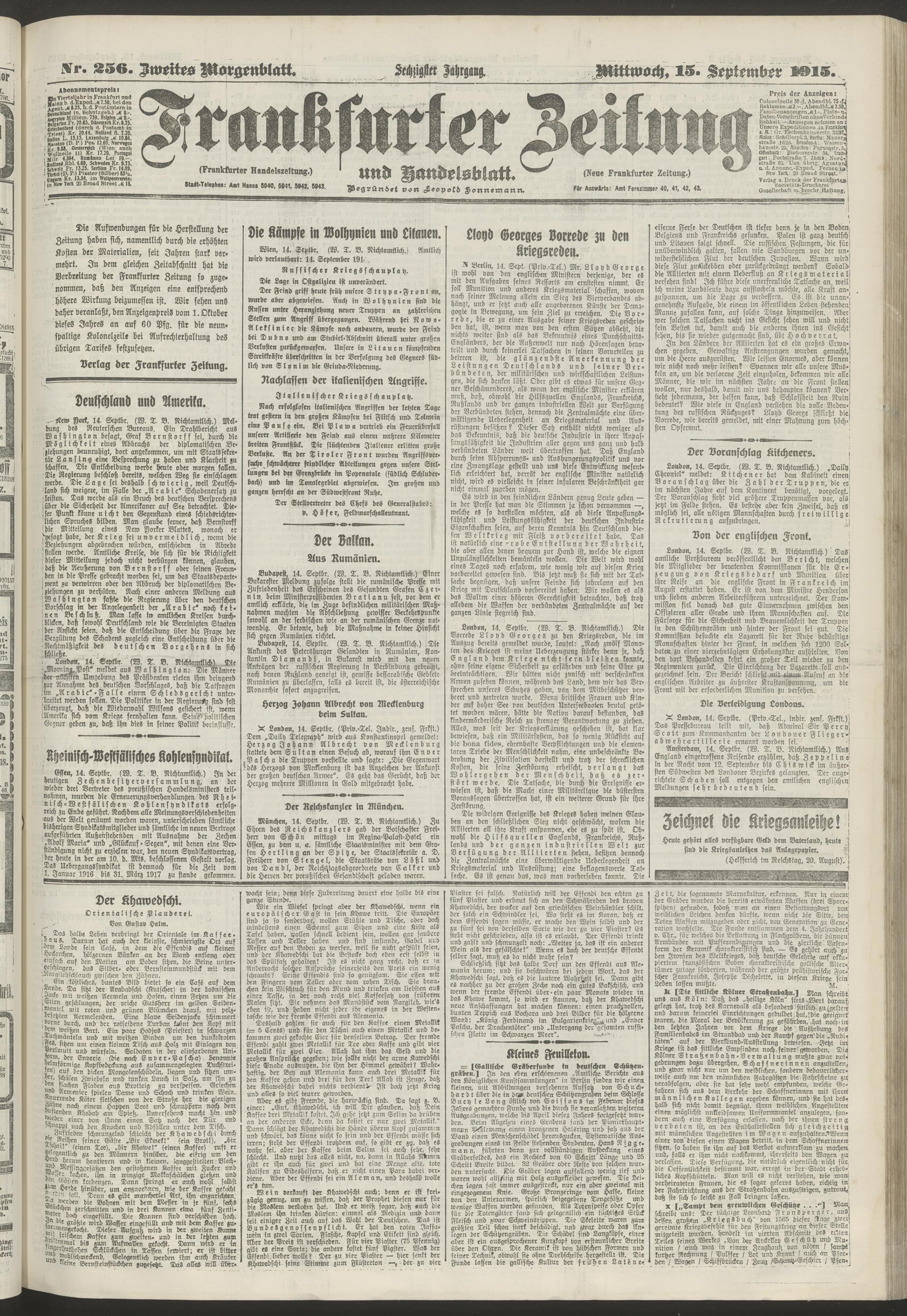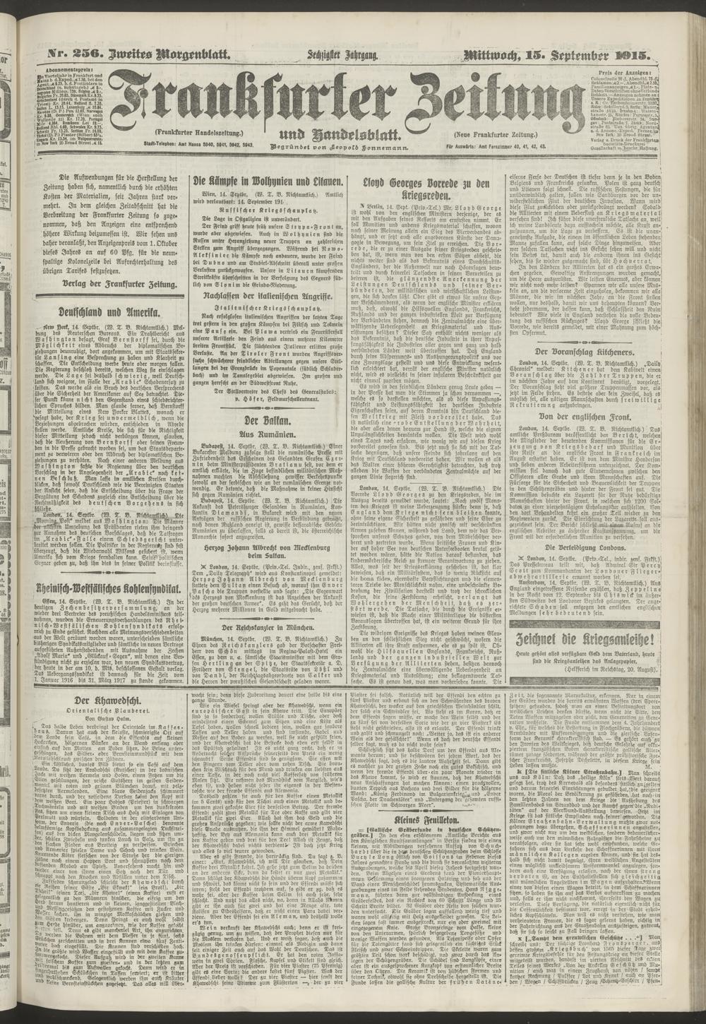 15.09.1915 = Nr. 256. Zweites Morgenblatt