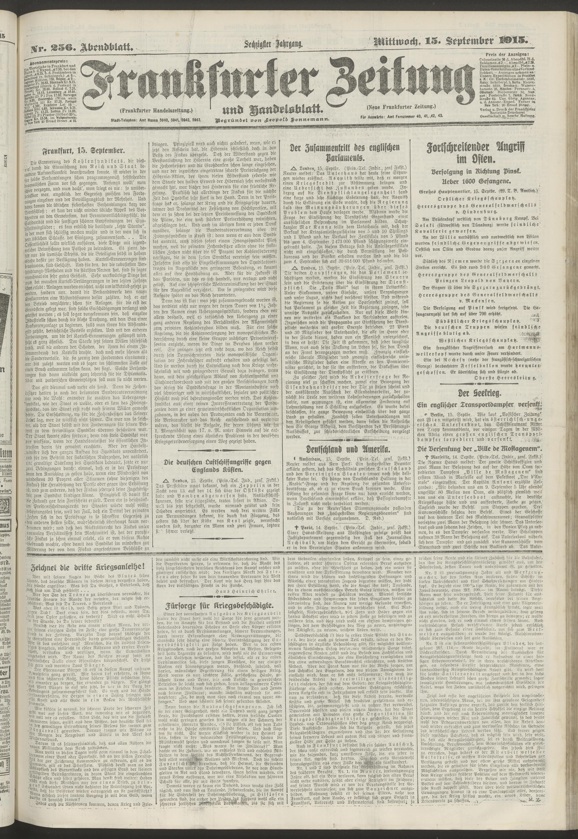 15.09.1915 = Nr. 256. Abendblatt