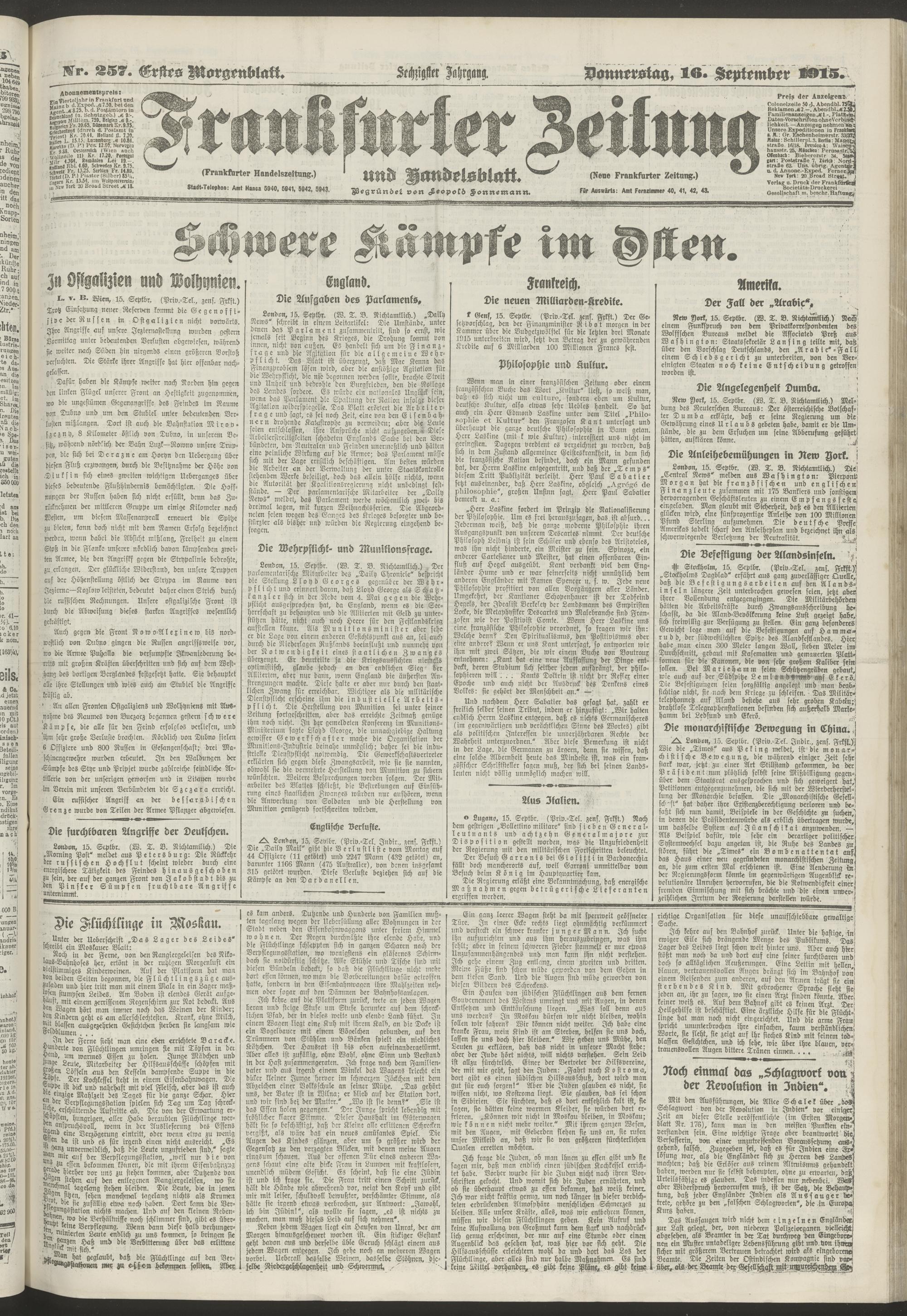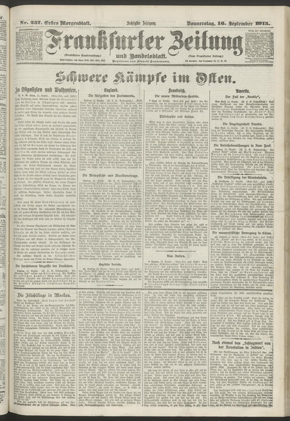 16.09.1915 = Nr. 257. Erstes Morgenblatt