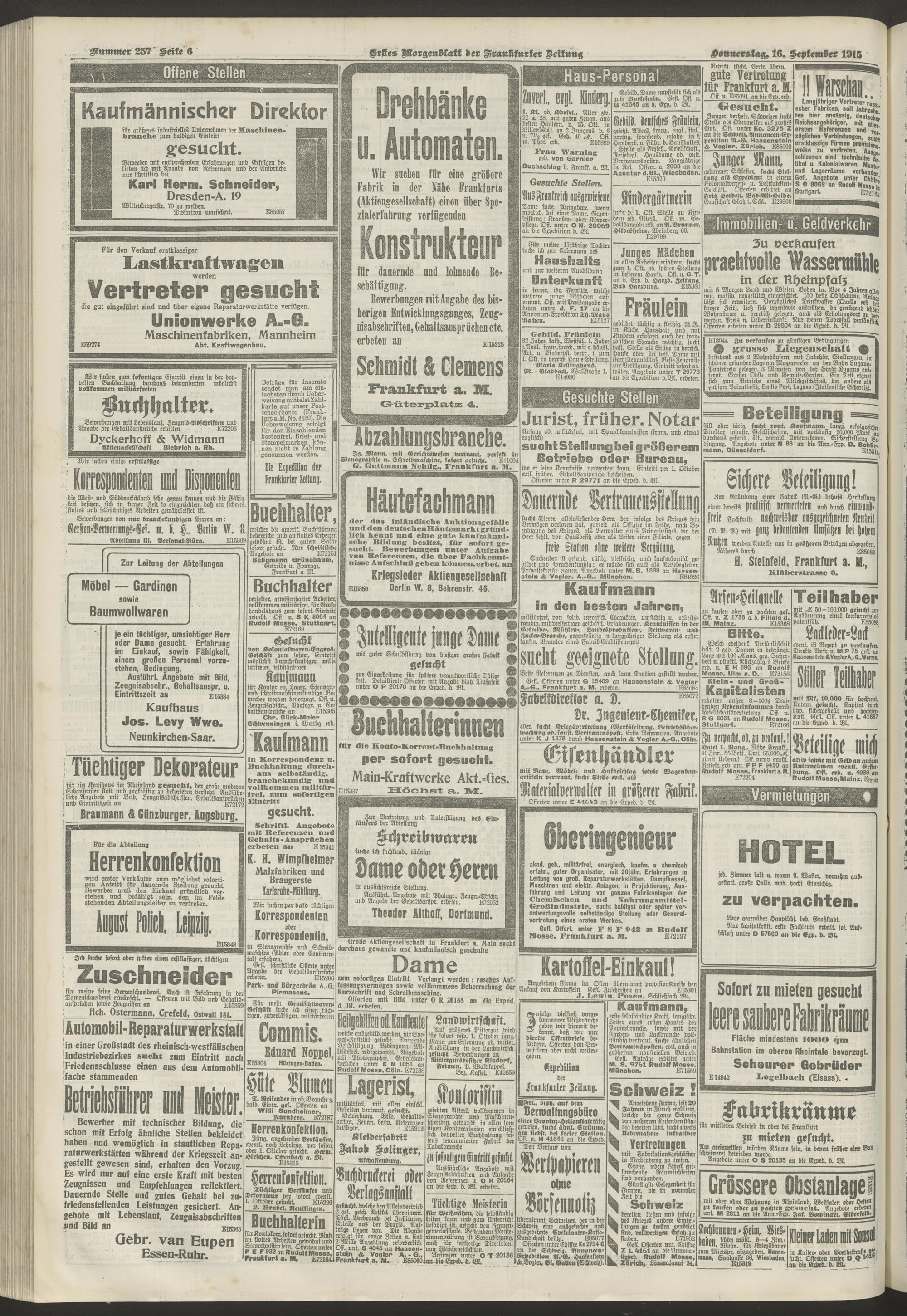16.09.1915 = Nr. 257. Erstes Morgenblatt