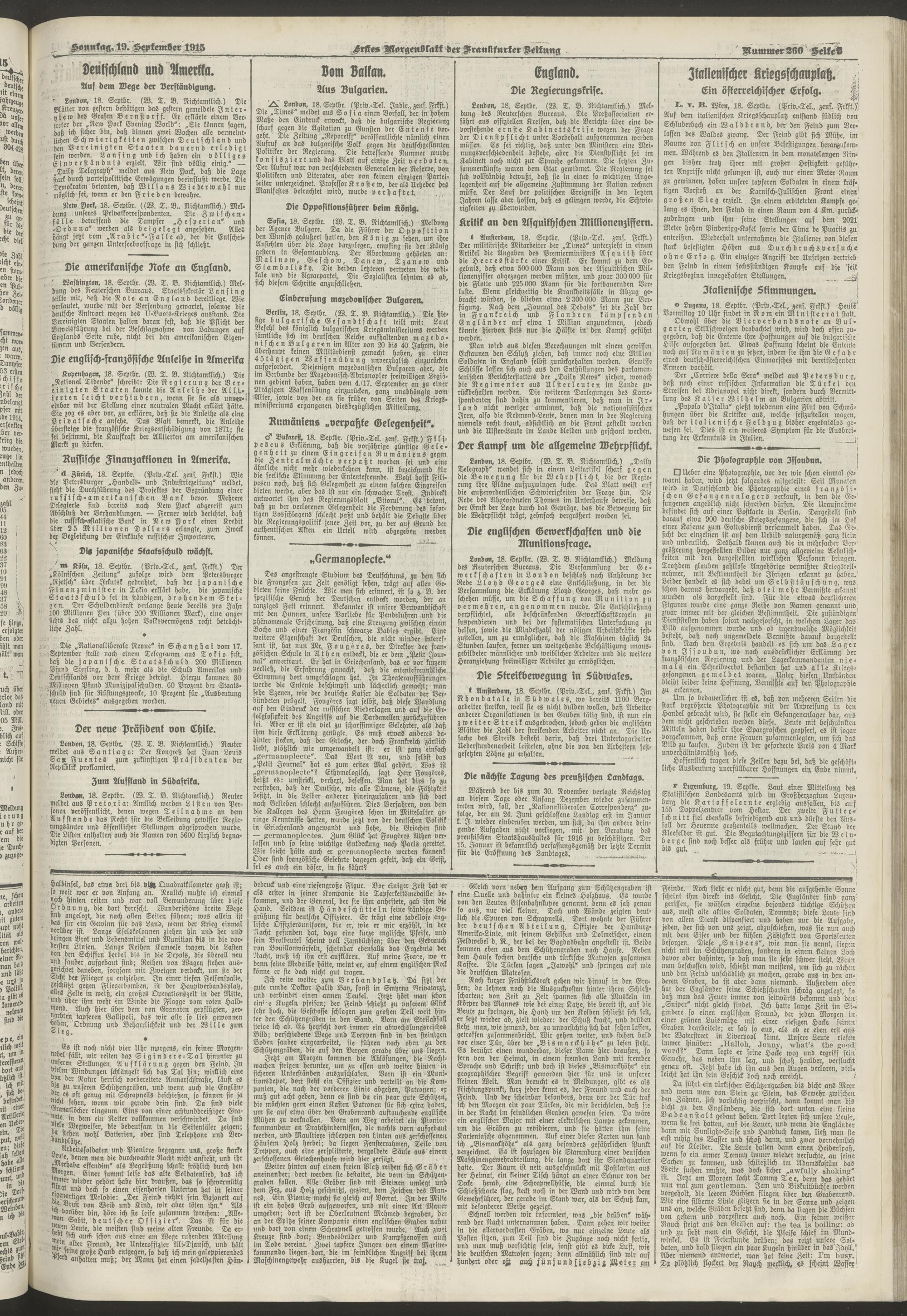 19.09.1915 = Nr. 260. Erstes Morgenblatt