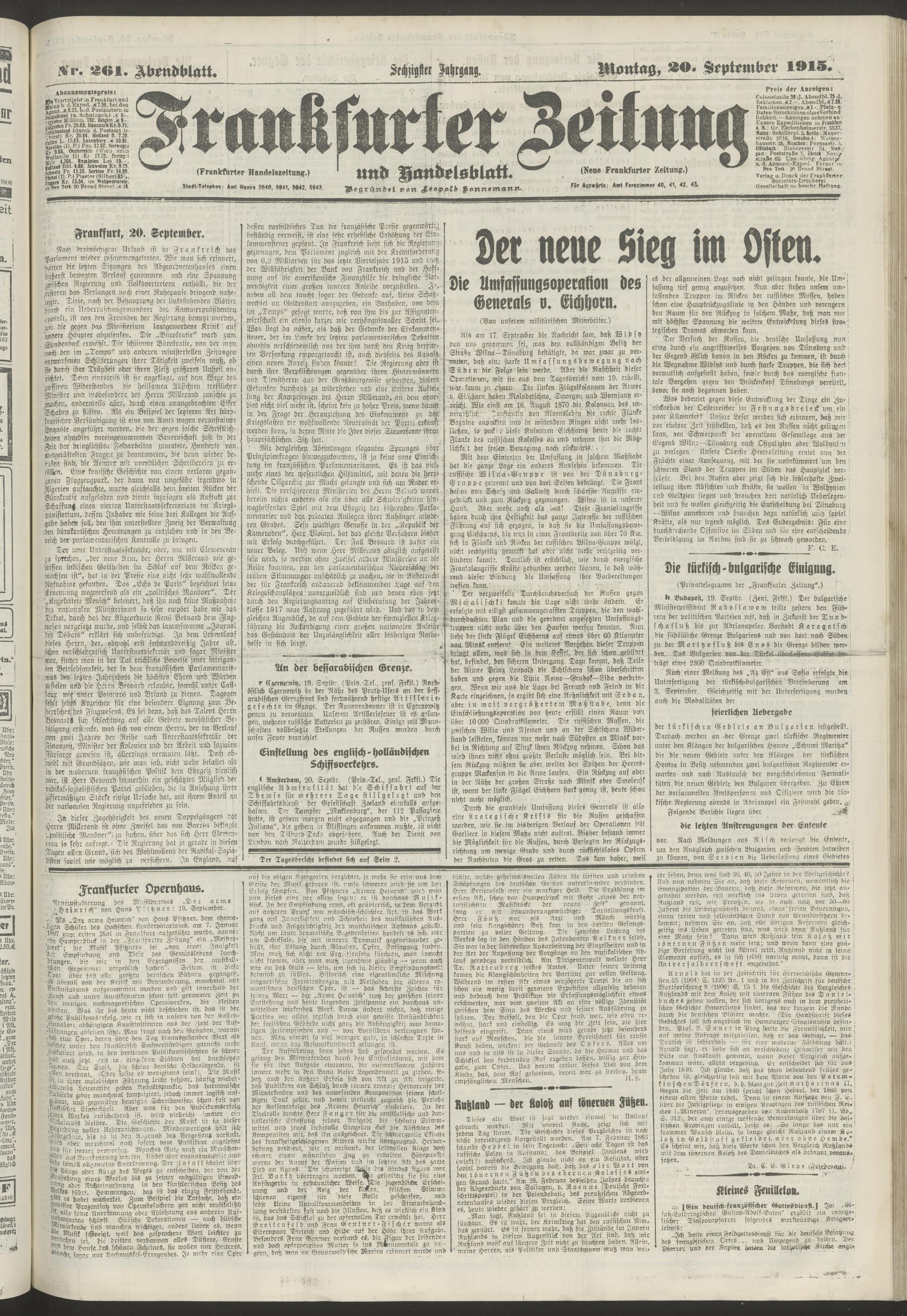 20.09.1915 = Nr. 261. Abendblatt