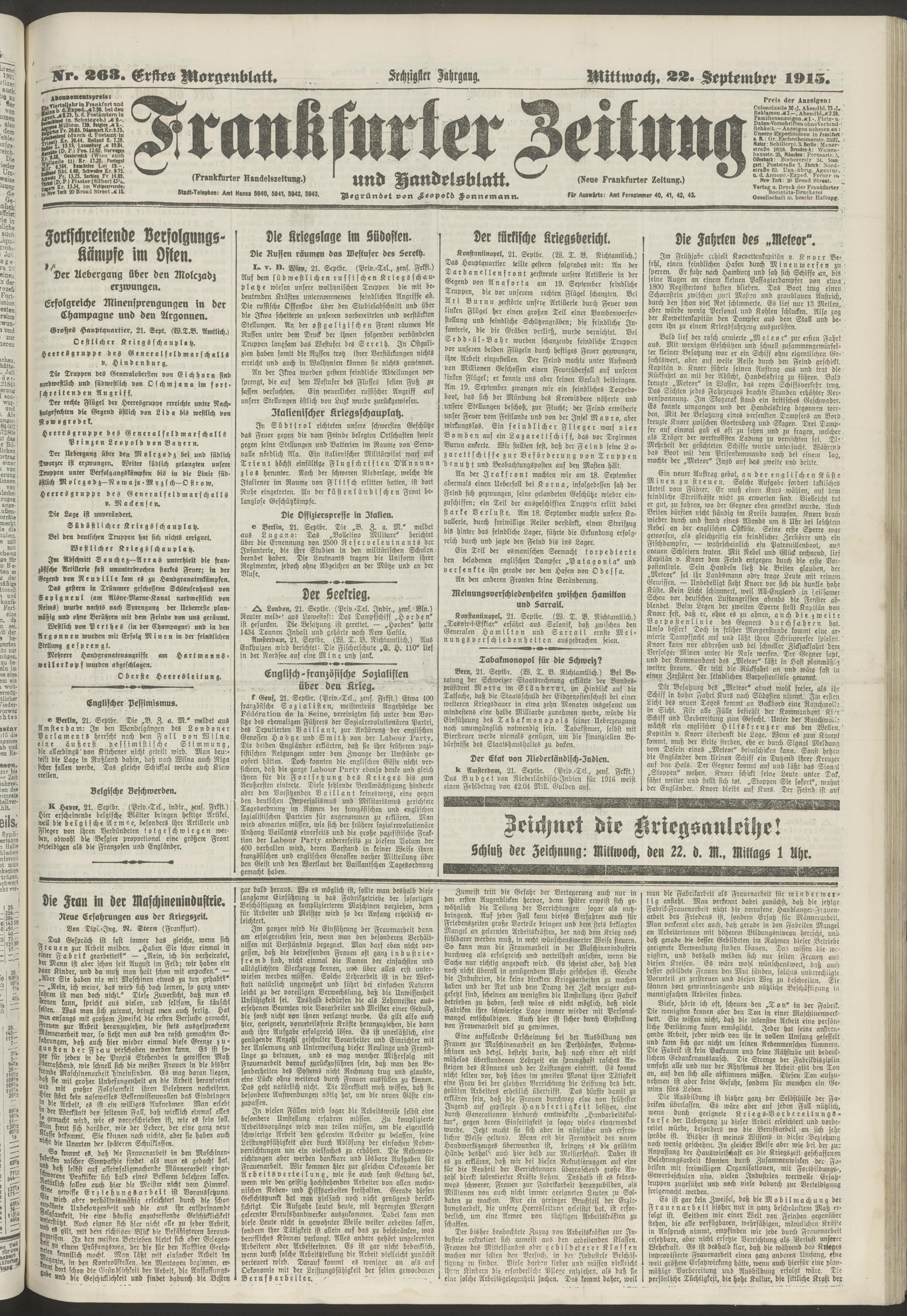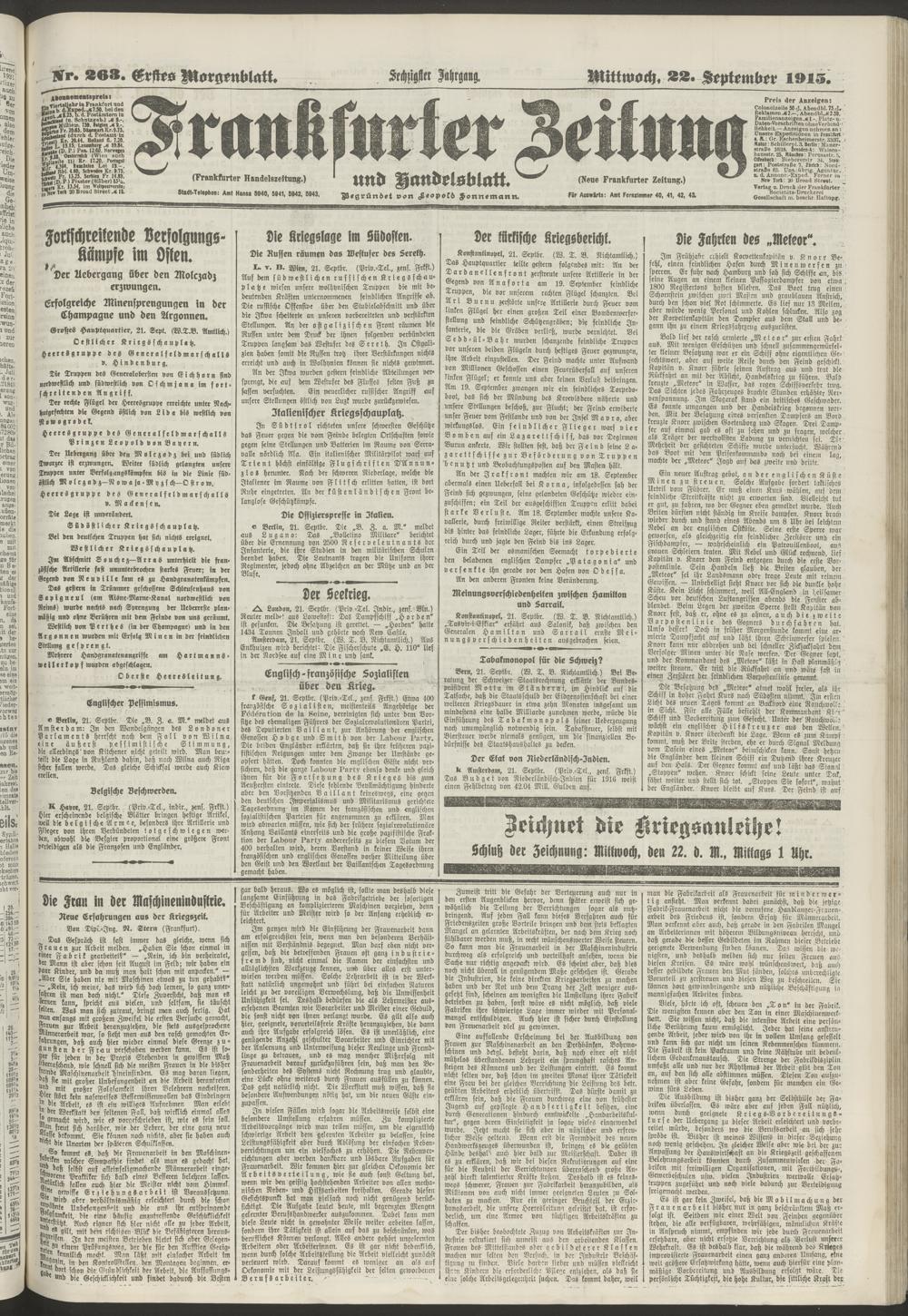 22.09.1915 = Nr. 263. Erstes Morgenblatt