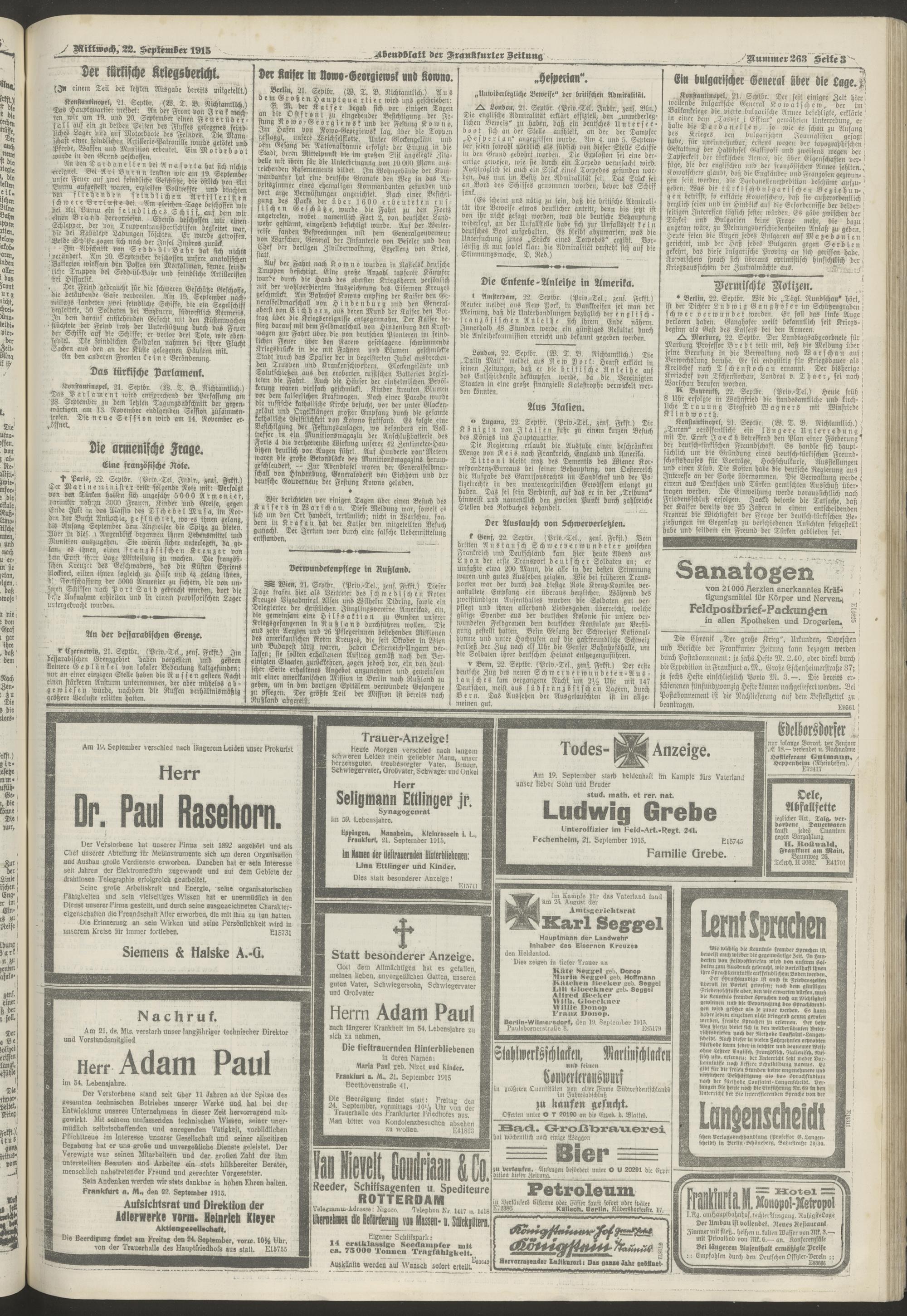 22.09.1915 = Nr. 263. Abendblatt
