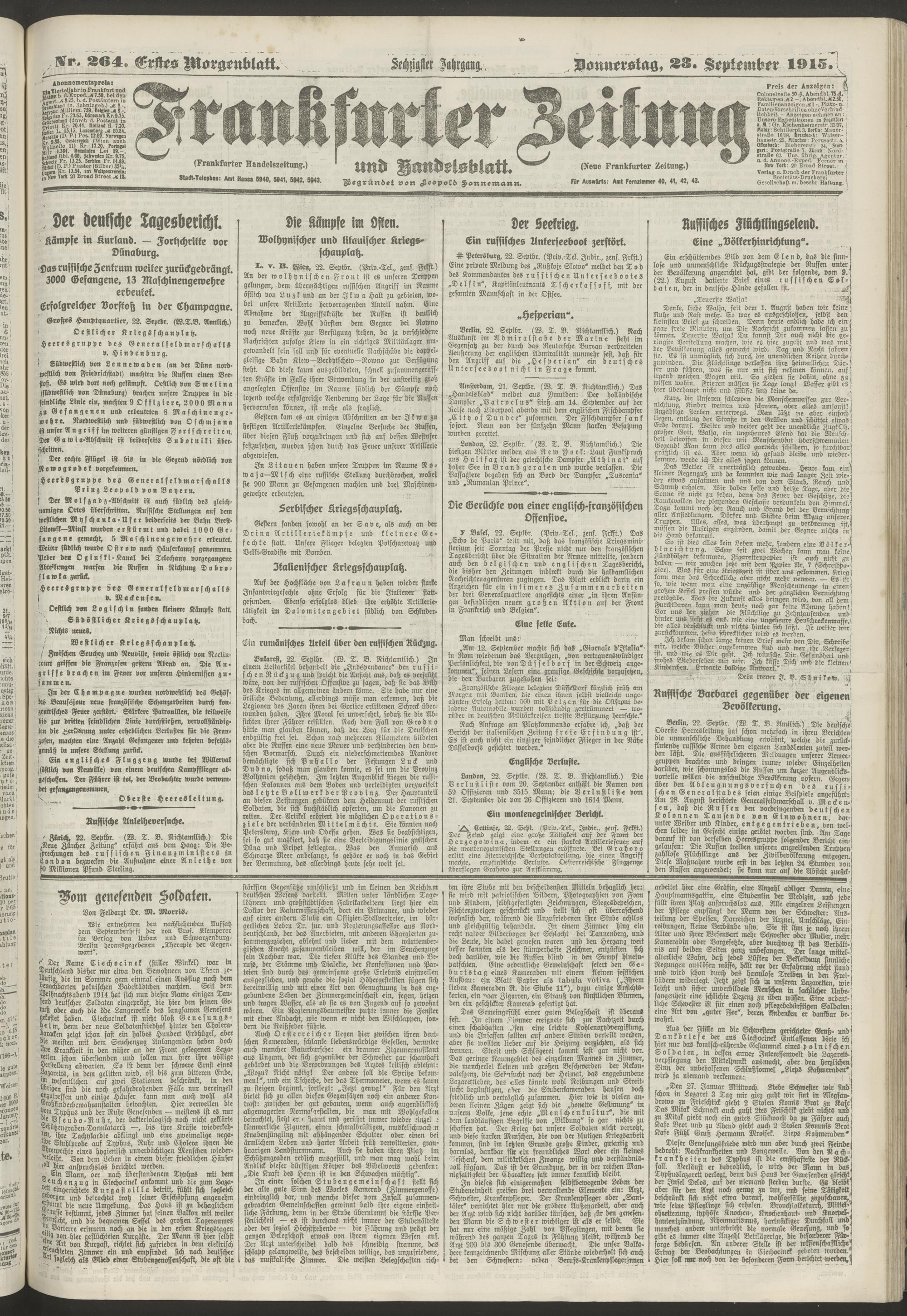 23.09.1915 = Nr. 264. Erstes Morgenblatt
