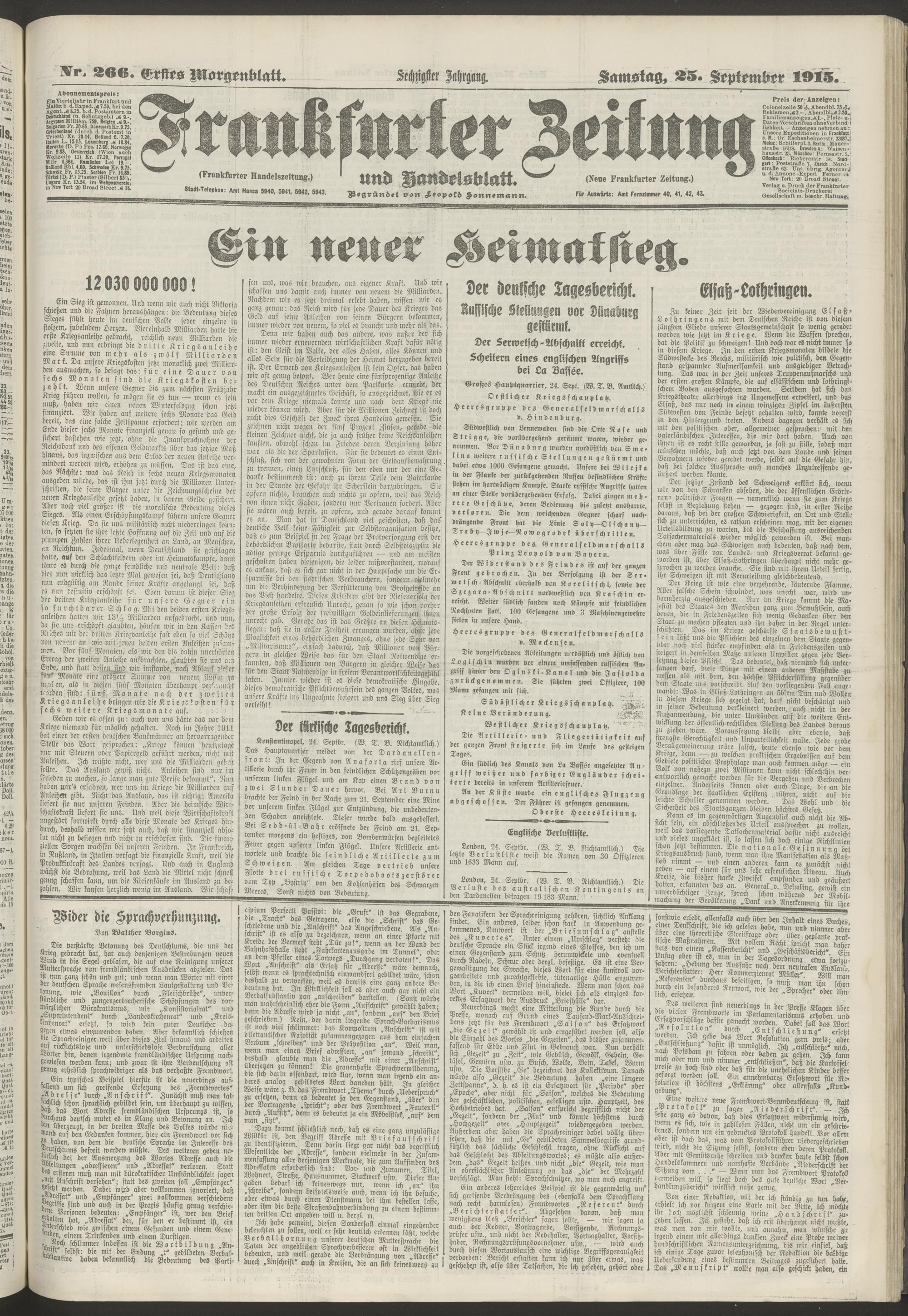 25.09.1915 = Nr. 266. Erstes Morgenblatt