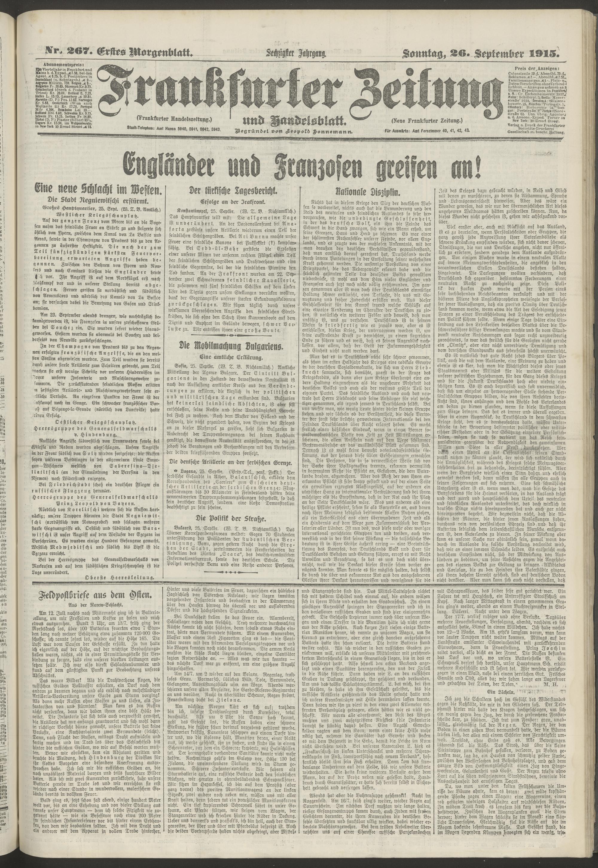 26.09.1915 = Nr. 267. Erstes Morgenblatt