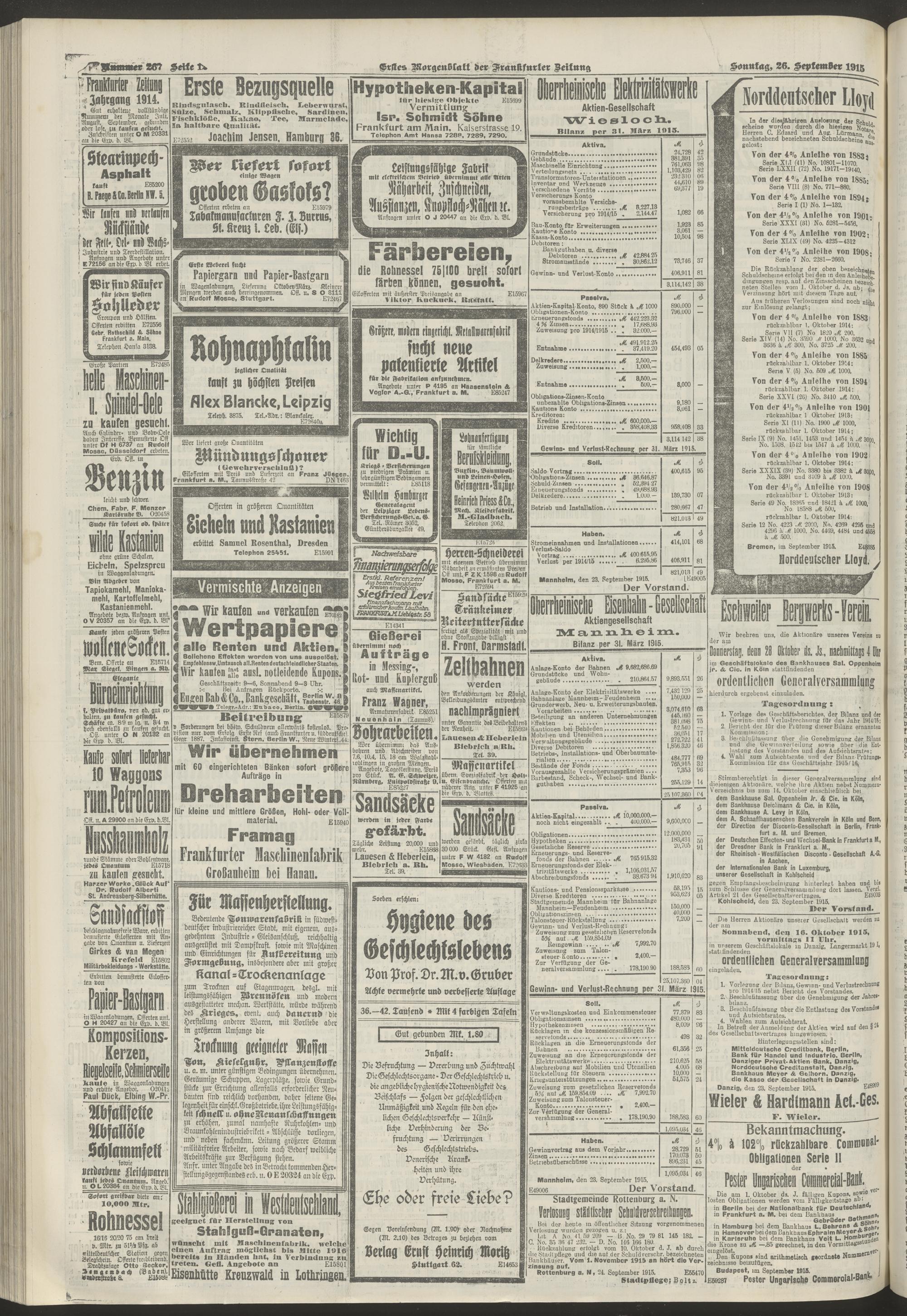 26.09.1915 = Nr. 267. Erstes Morgenblatt