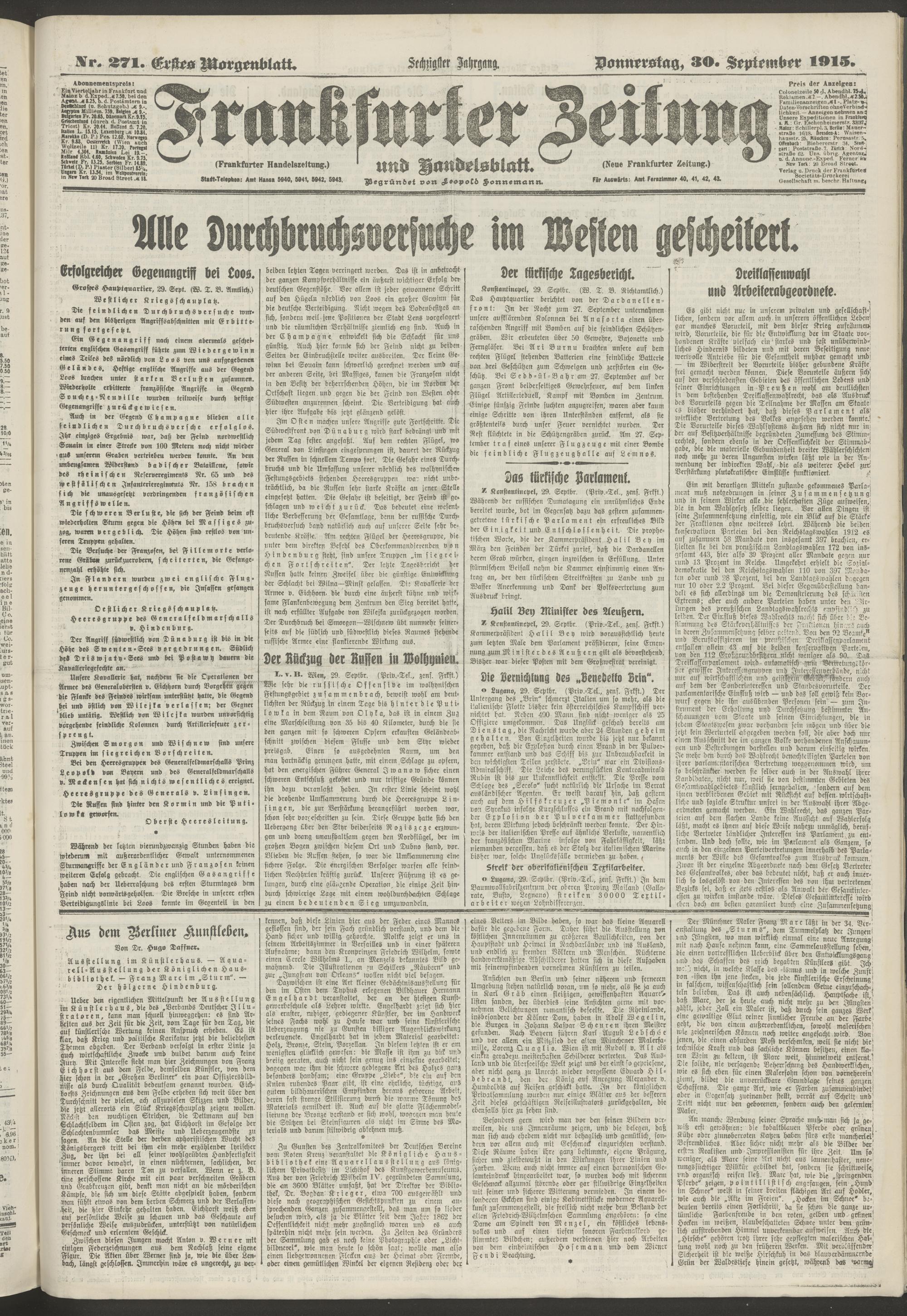 30.09.1915 = Nr. 271. Erstes Morgenblatt