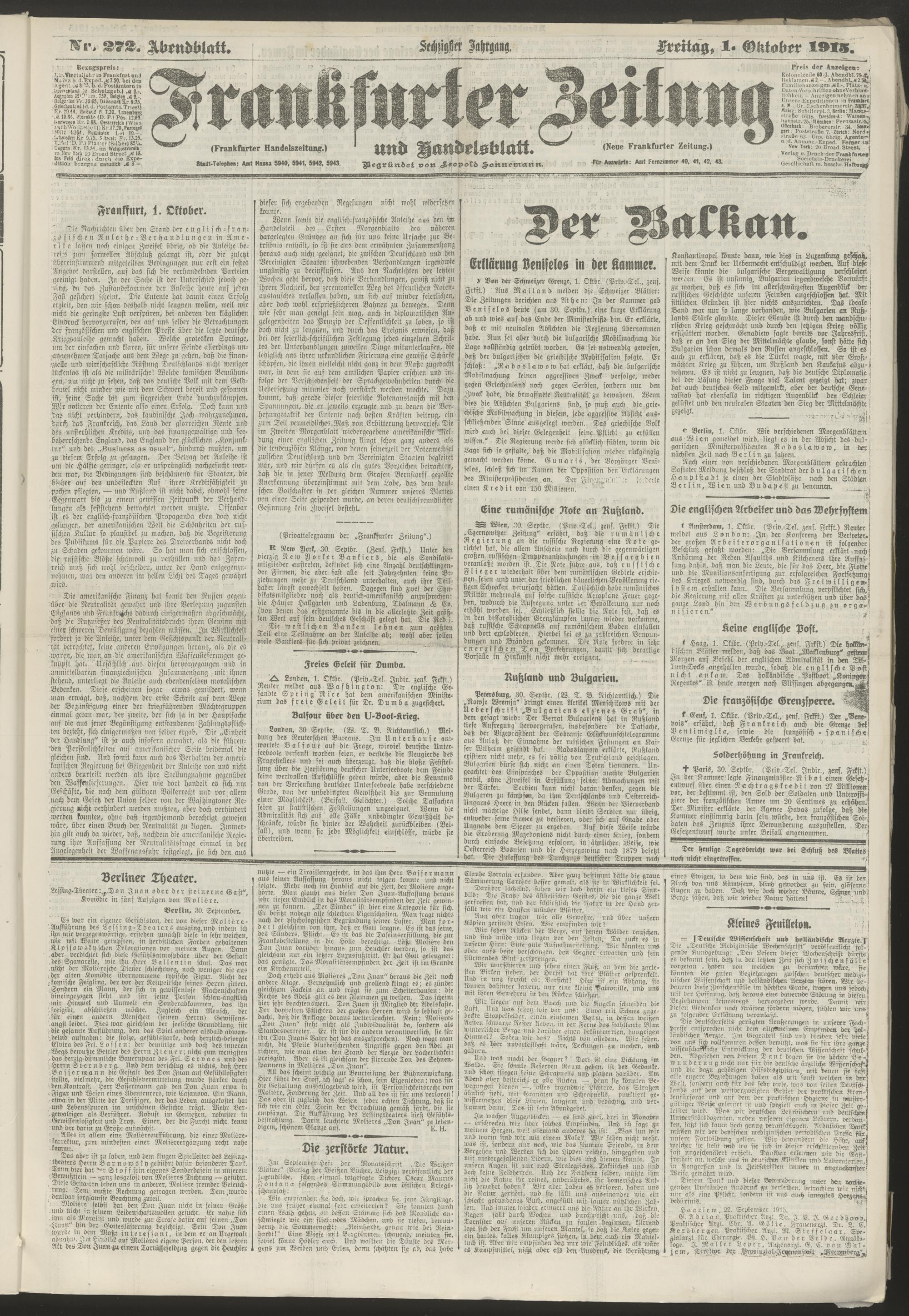 01.10.1915 = Nr. 272. Abendblatt