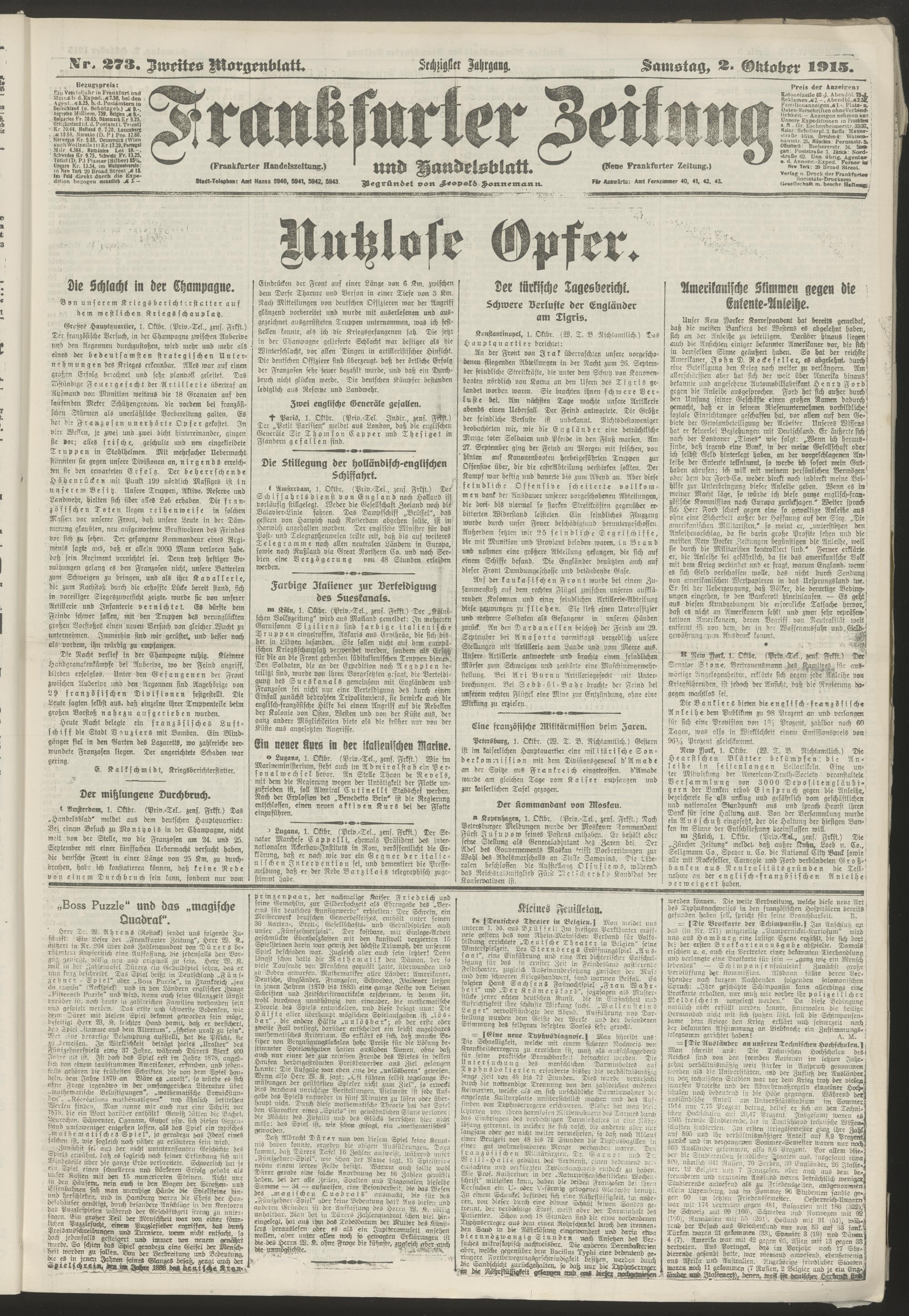02.10.1915 = Nr. 273. Zweites Morgenblatt