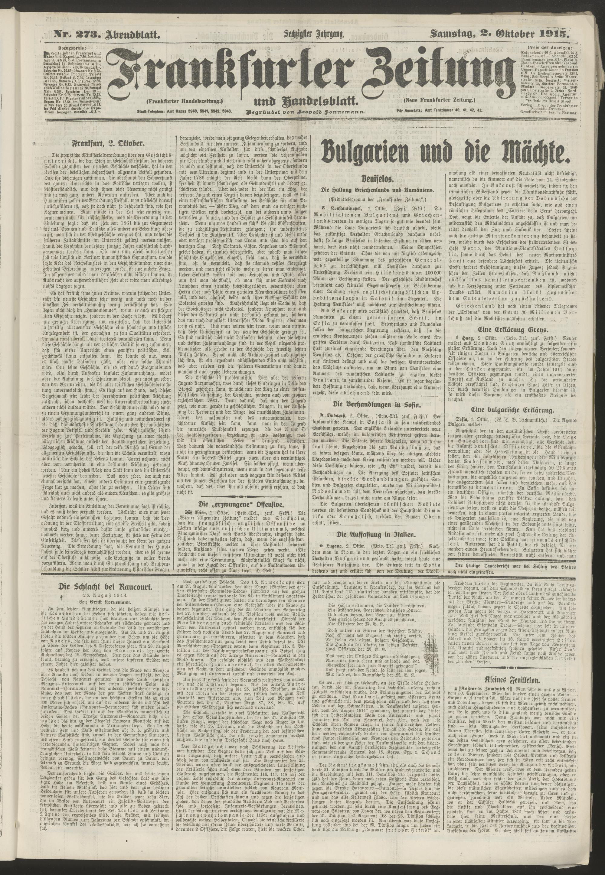 02.10.1915 = Nr. 273. Abendblatt