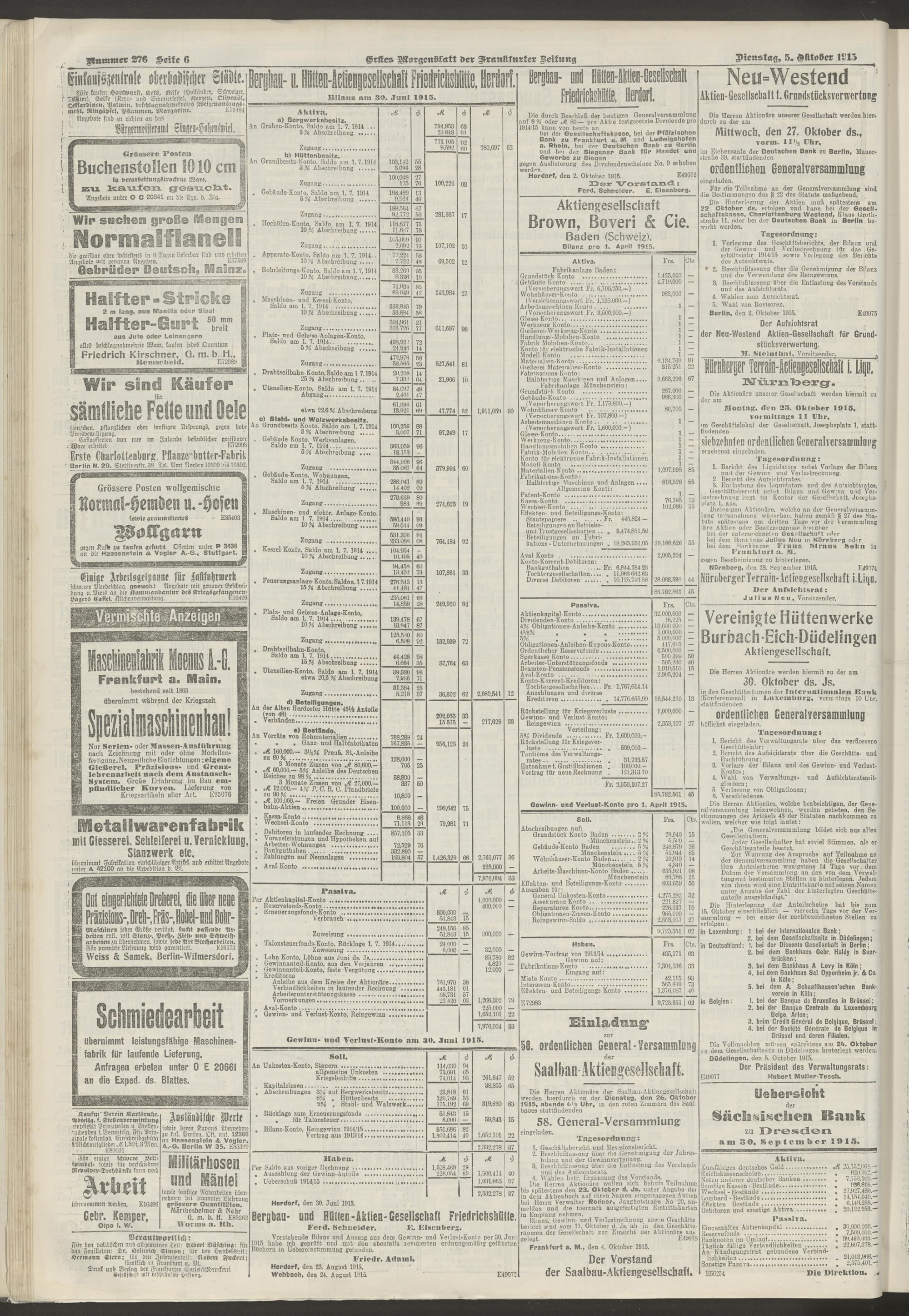 05.10.1915 = Nr. 276. Erstes Morgenblatt