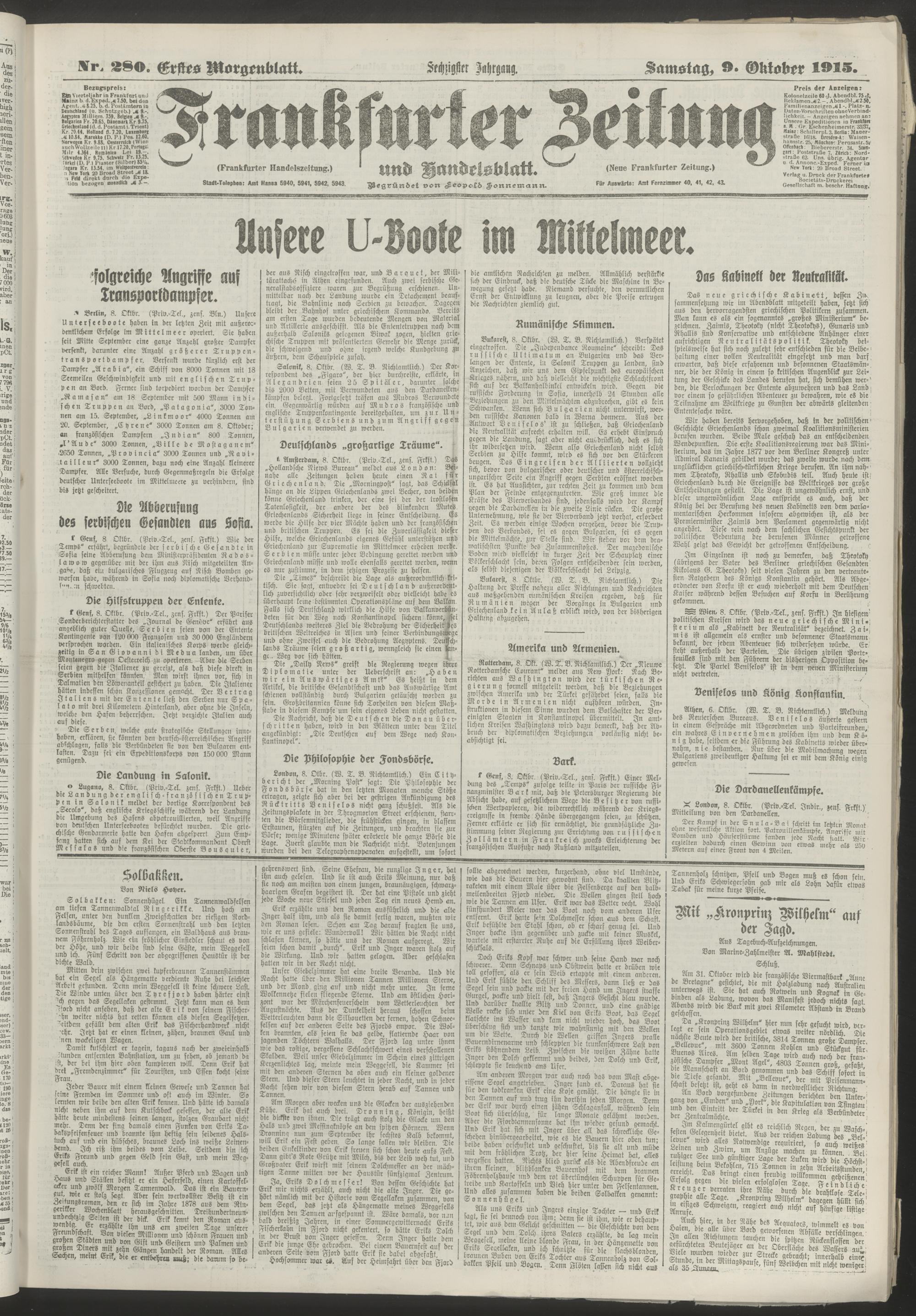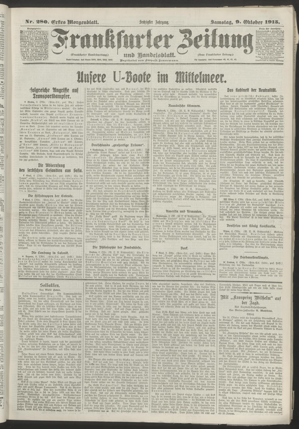 09.10.1915 = Nr. 280. Erstes Morgenblatt