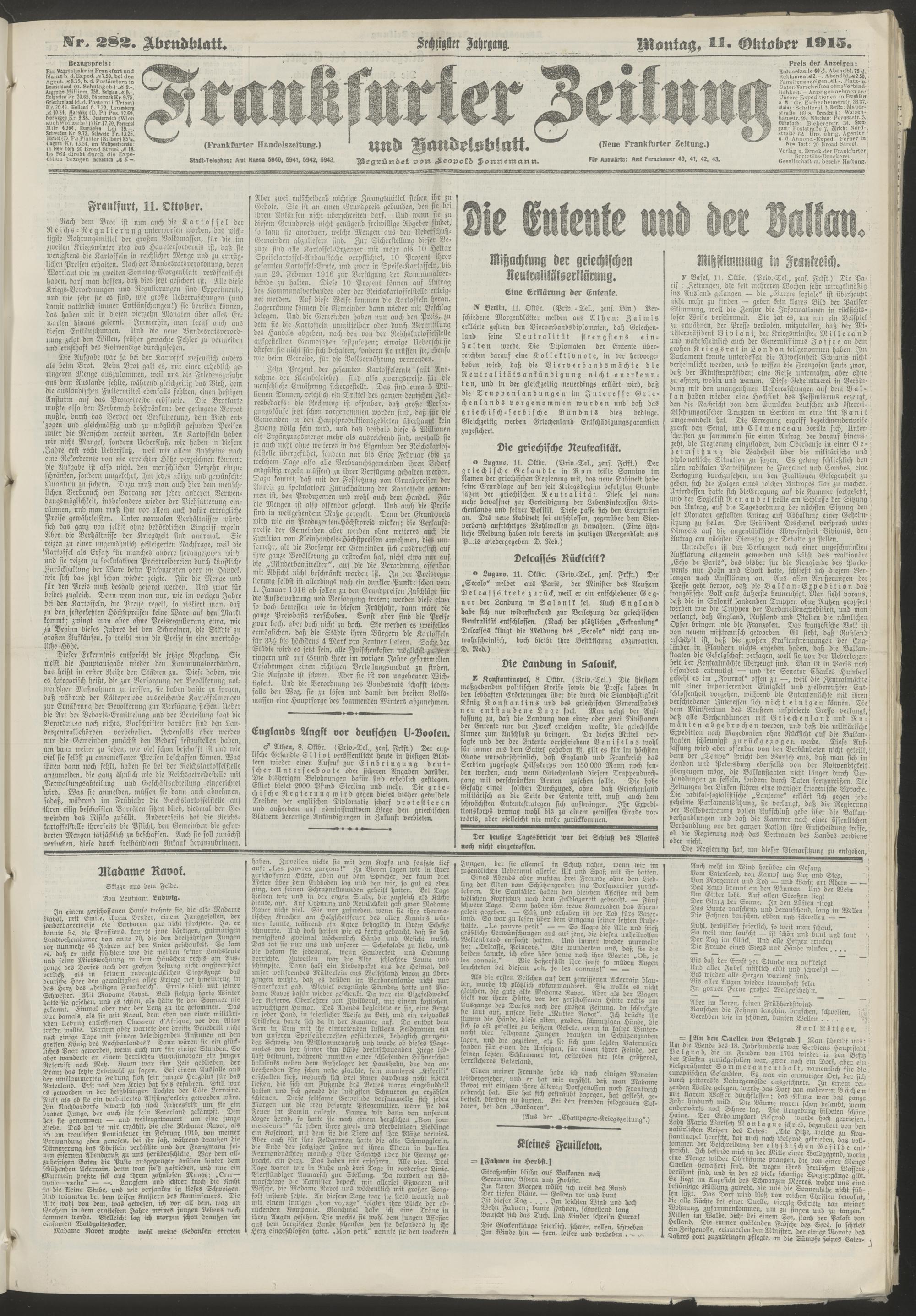 11.10.1915 = Nr. 282. Abendblatt