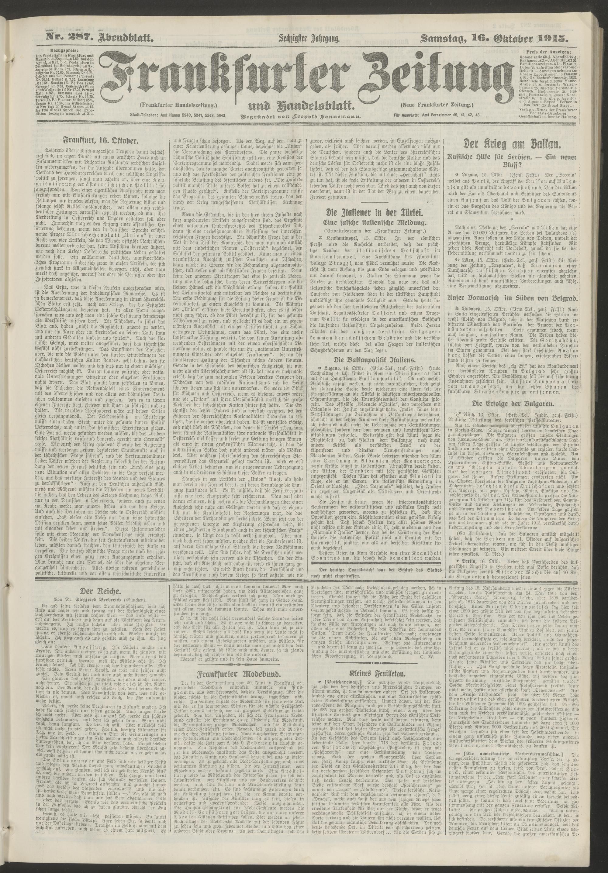 16.10.1915 = Nr. 287. Abendblatt