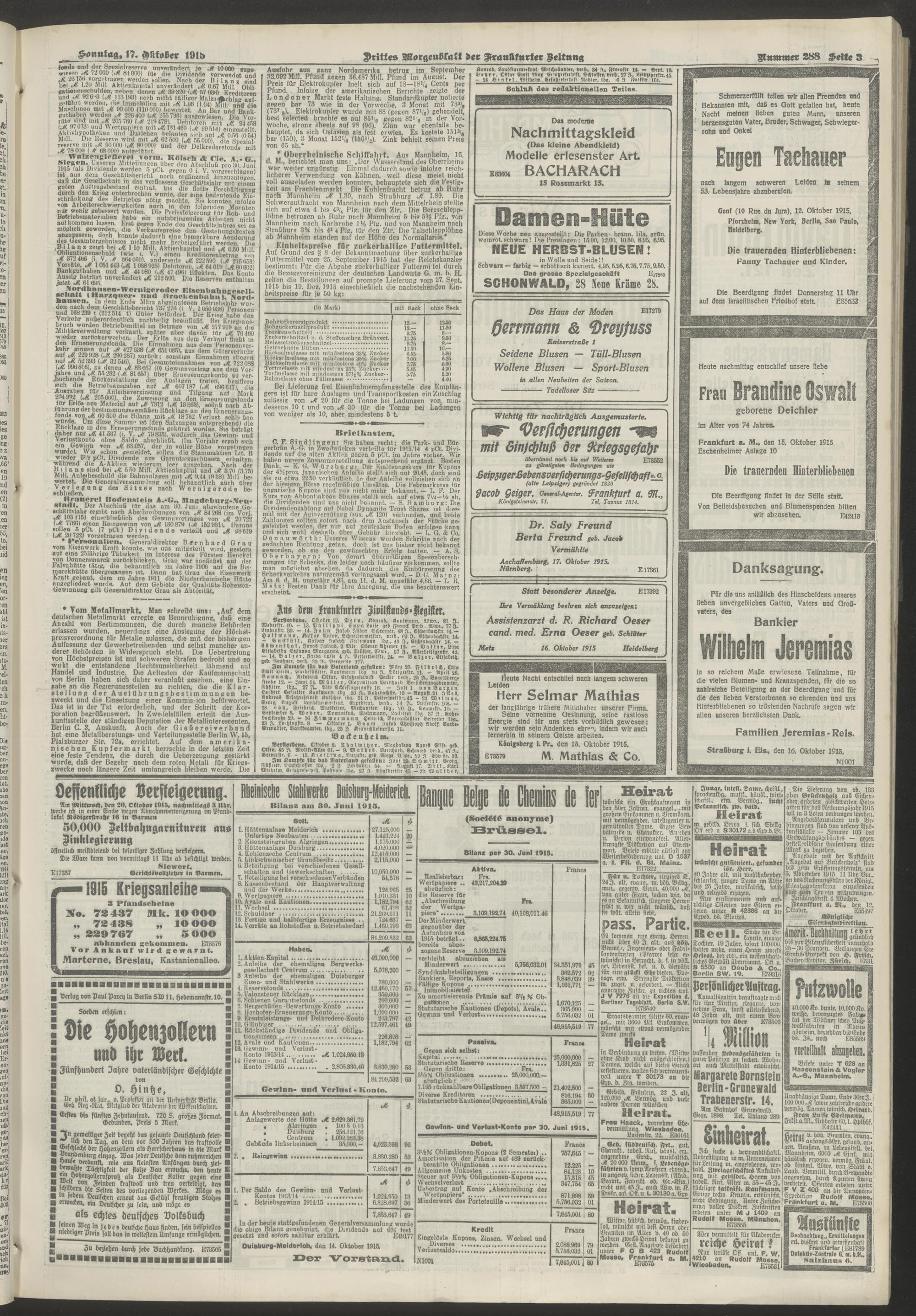 17.10.1915 = Nr. 288. Drittes Morgenblatt