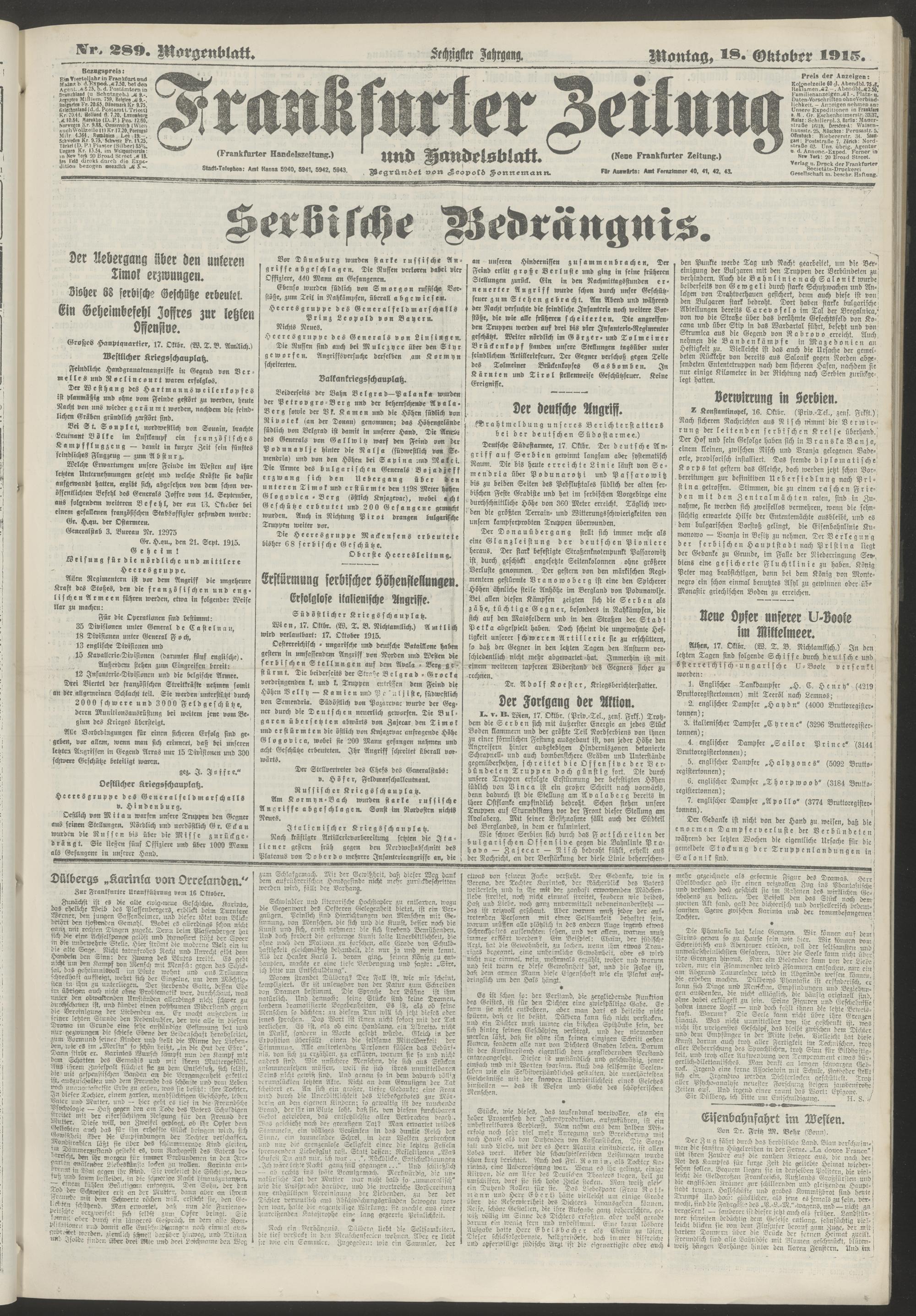 18.10.1915 = Nr. 289. Morgenblatt
