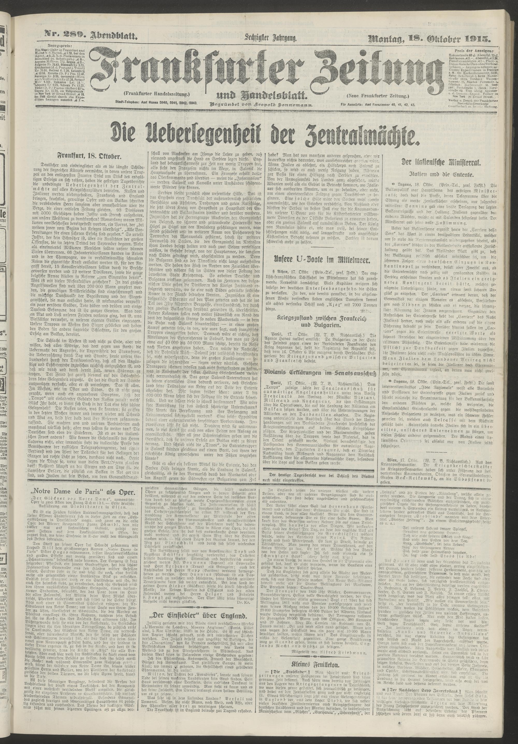 18.10.1915 = Nr. 289. Abendblatt