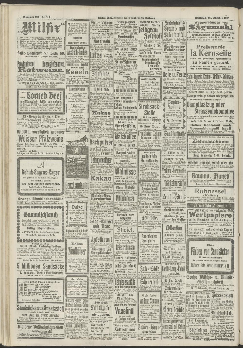 20.10.1915 = Nr. 291. Erstes Morgenblatt