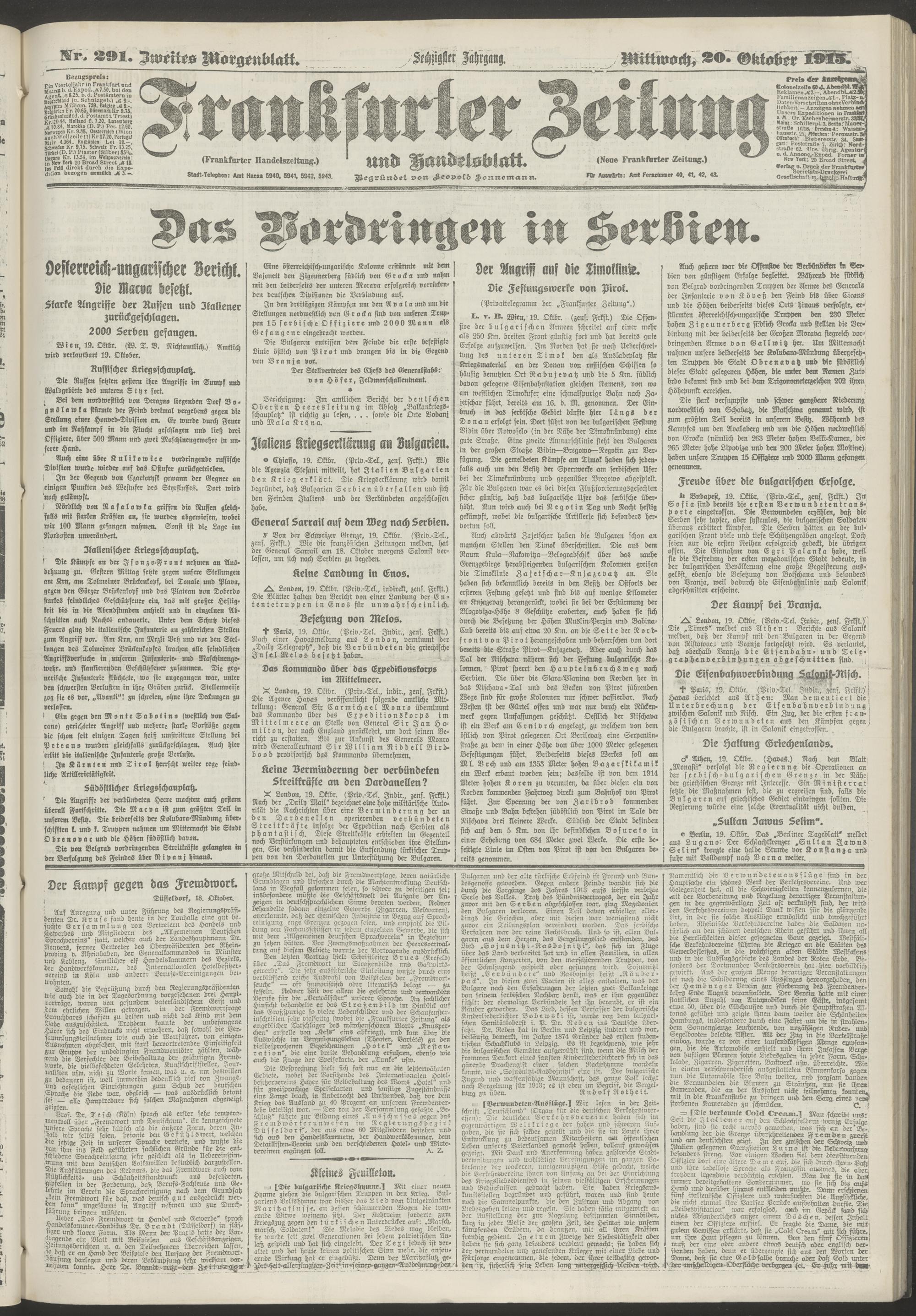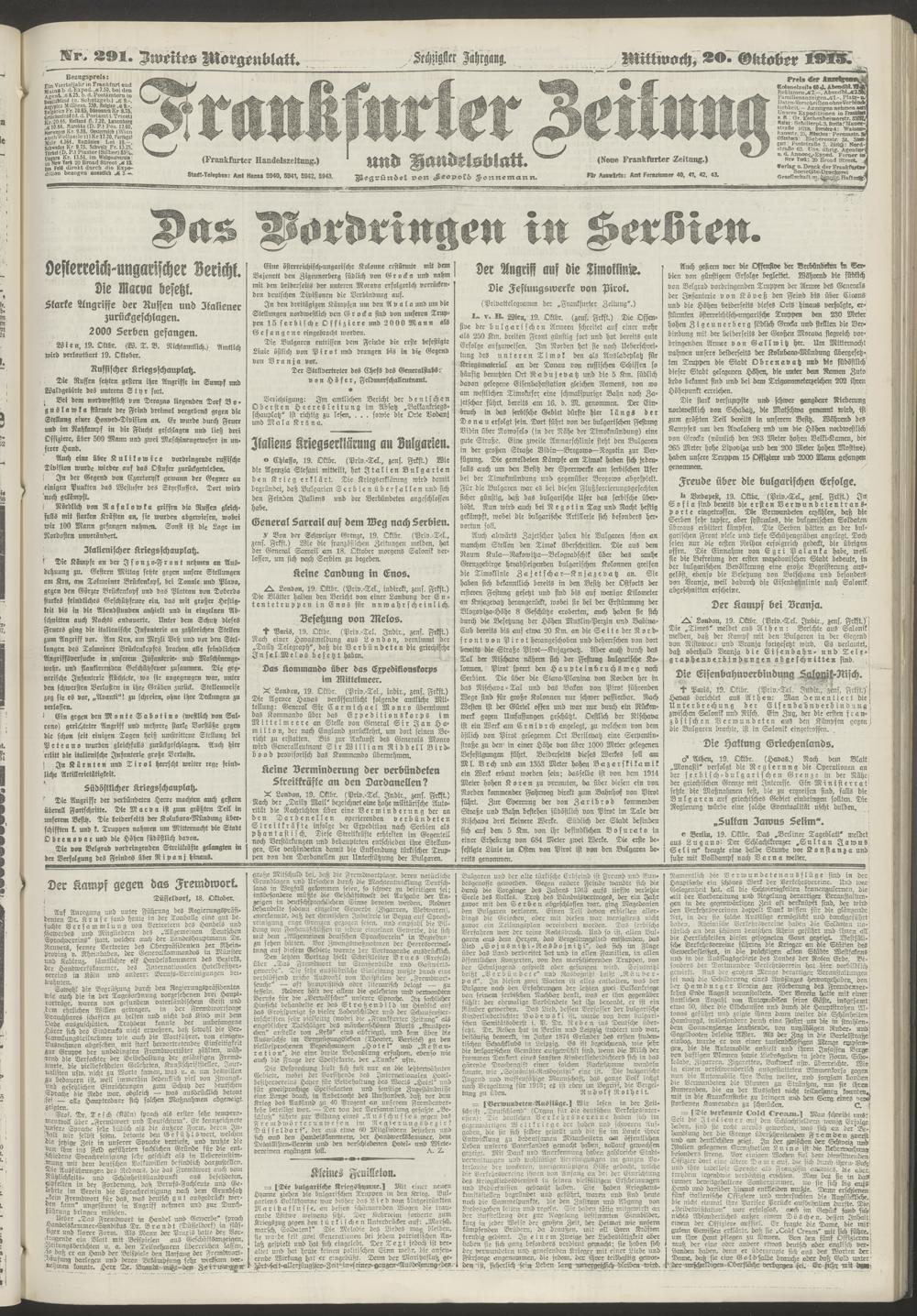 20.10.1915 = Nr. 291. Zweites Morgenblatt