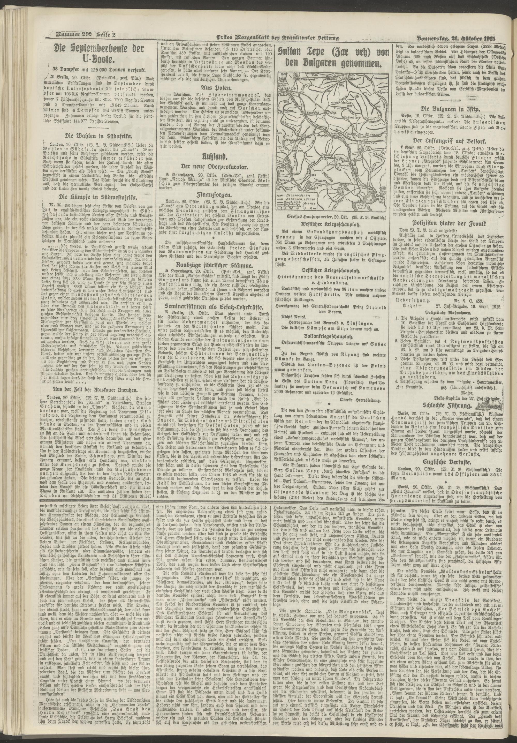 21.10.1915 = Nr. 292. Erstes Morgenblatt