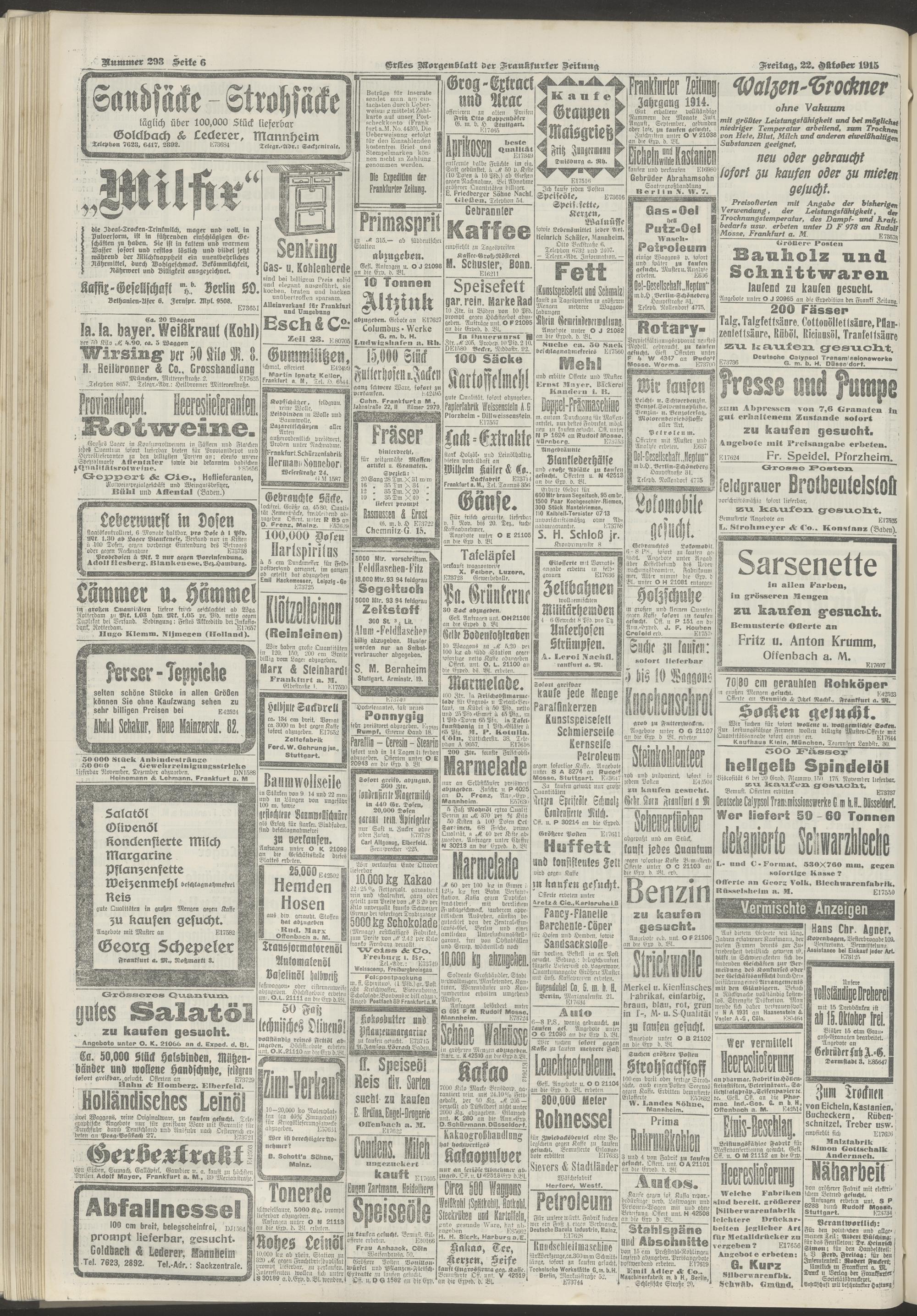 22.10.1915 = Nr. 293. Erstes Morgenblatt
