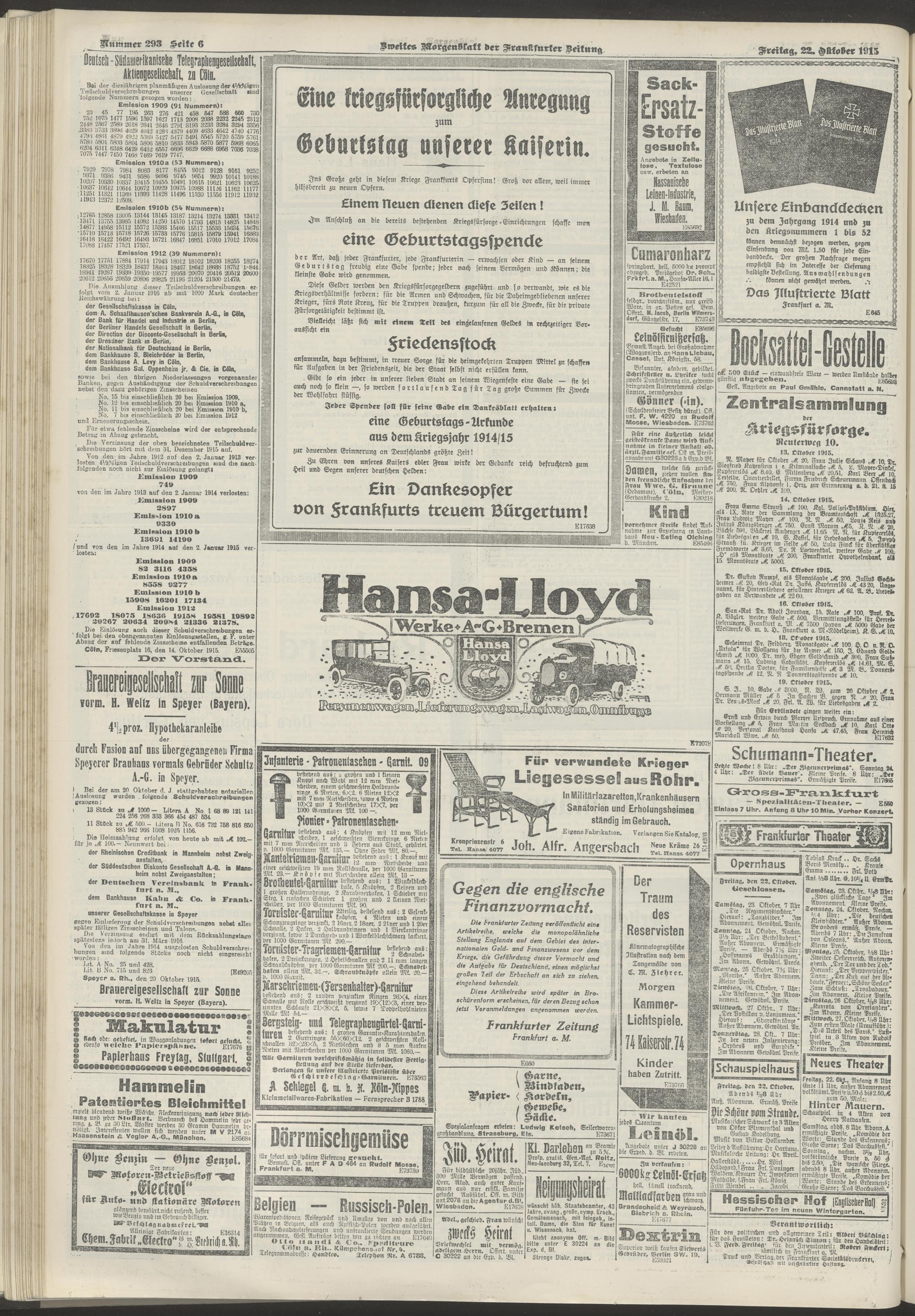 22.10.1915 = Nr. 293. Zweites Morgenblatt